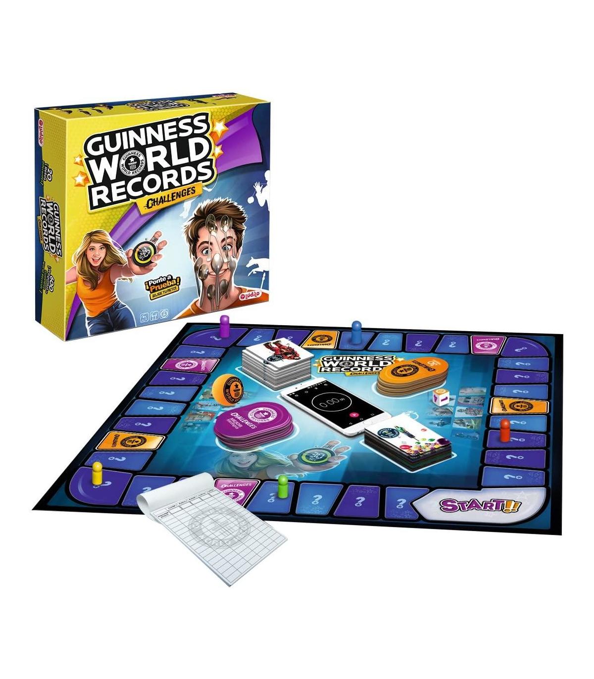 Guinness World Records Challenges El juego oficial de retos y preguntas del Guinness World Records. Demuestra cuánto sa­bes acerca de los récords mundiales y tus habilidades retando a los demás jugadores. Consigue ganar un reto. Juego oficial Juego de retos y preguntas Divertido juego; consigue batir un record Guinness