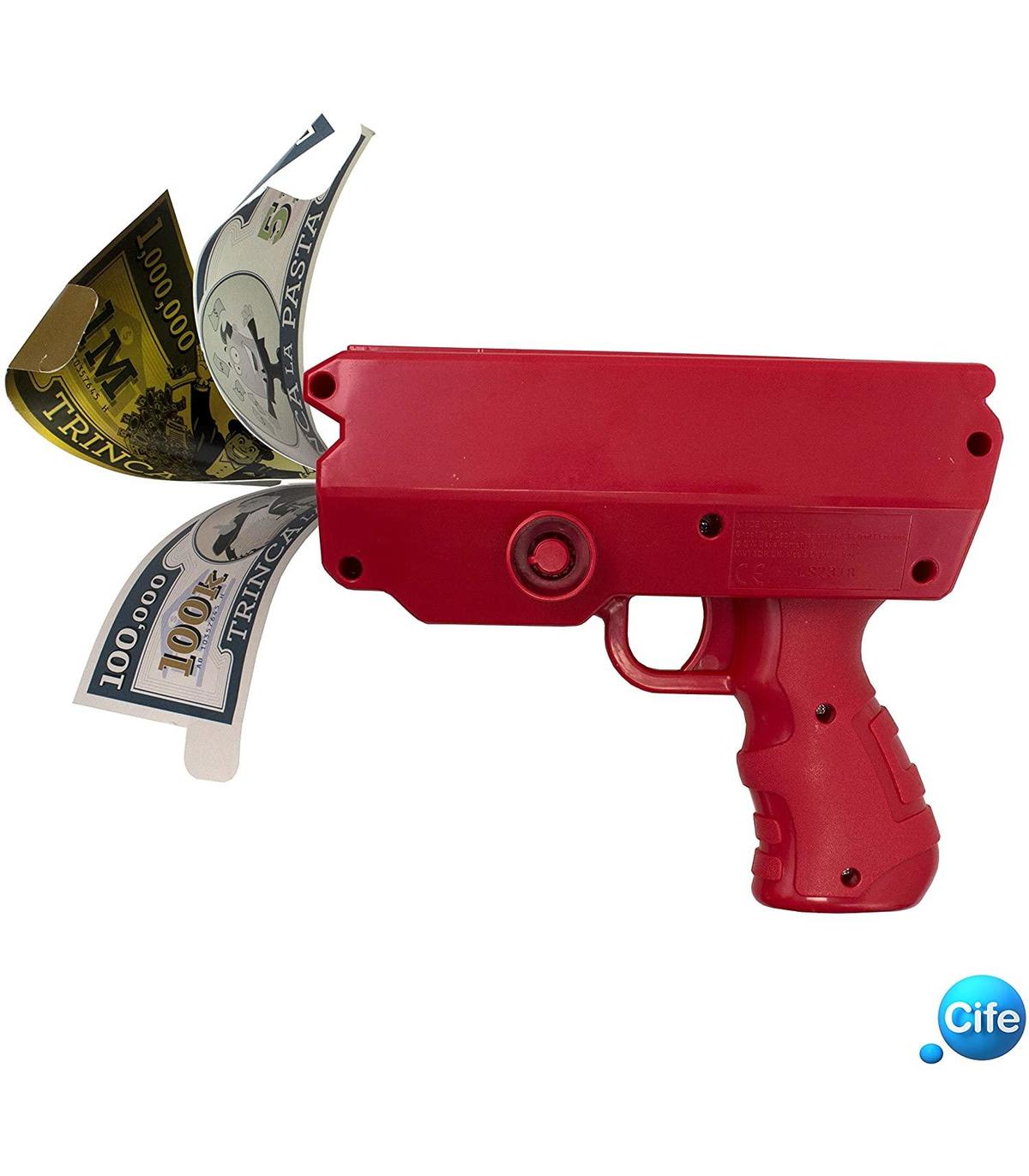Divertido juego de mesa para pasarlo pipa. Sé el primer jugador en conseguir un millón de dólares en efectivo y conseguirás ganar el juego. Deberás ser rápido, ¡el dinero llueve! Si los billetes tocan el suelo, se eliminan. Mete los billetes en la pistola y lánzalos al aire, pero ten cuidado: algunos billetes restan y otros doblan e incluso triplican todo tu dinero. Juega con tu familia o con tus amigos y alucina con la lluvia de dinero.