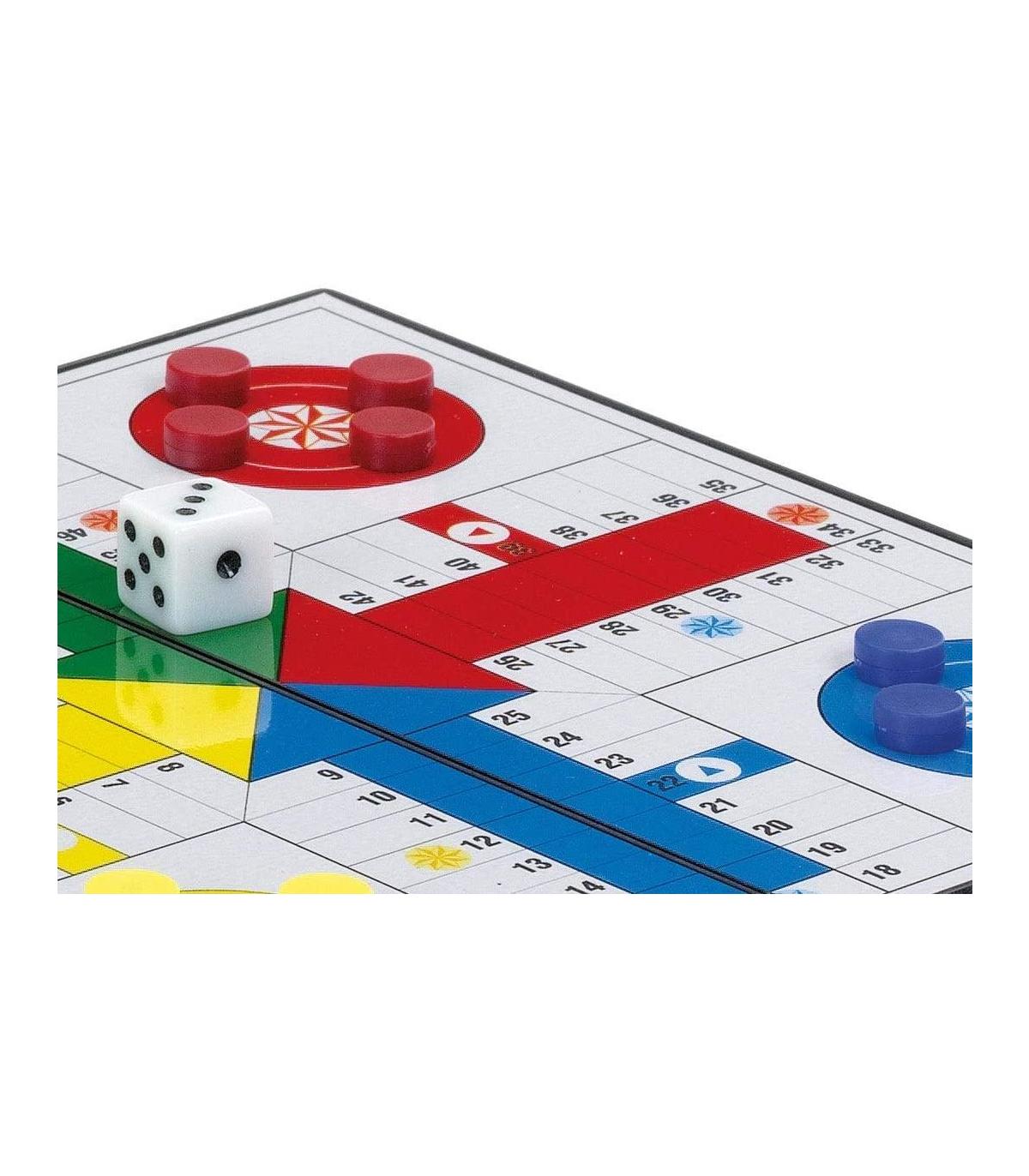 CÓMO JUGAR - Es un tablero de parchís que se dobla por la mitad para convertirse en un estuche y así que se puedan guardar las fichas. La superficie es metálica y las fichas magnéticas, así que junto a su reducido tamaño lo hacen ideal para viajes. Podrás jugar en movimiento y no se te caerá ninguna ficha.