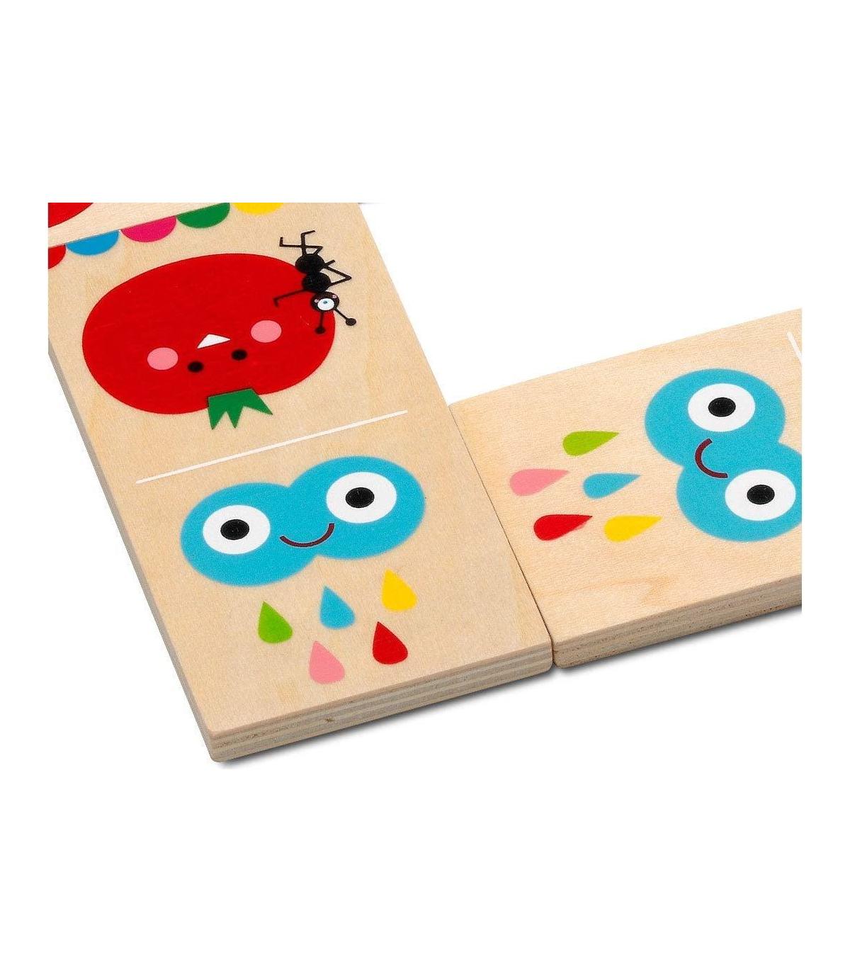 Fichas de dominó de madera con ilustraciones infantiles EDAD: +2 NIVEL: 2 años, infantil.