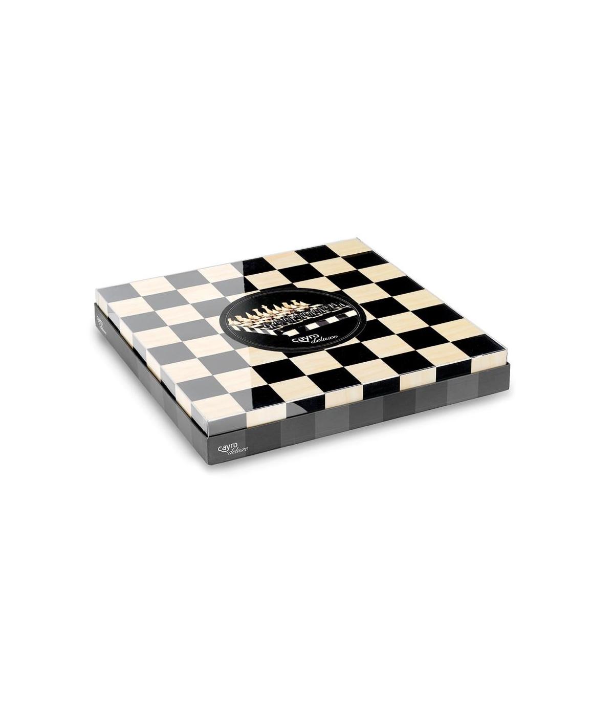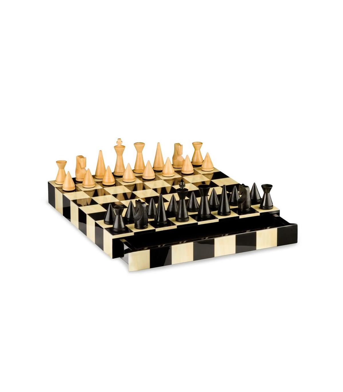 Juego Ajedrez 35x35 Cm Moderno tablero de ajedrez de 35 x 35 cm con cajón y figuras de diseño moderno. Fabricado en madera de estilo moderno con un original diseño y un espectacular acabado en alto brillo el interior esta forrado con fieltro de alta calidad y presentado en una original caja con la parte superior en transparente.