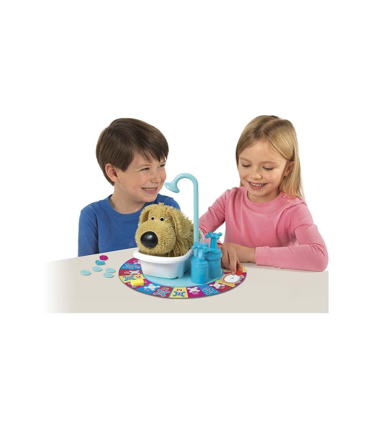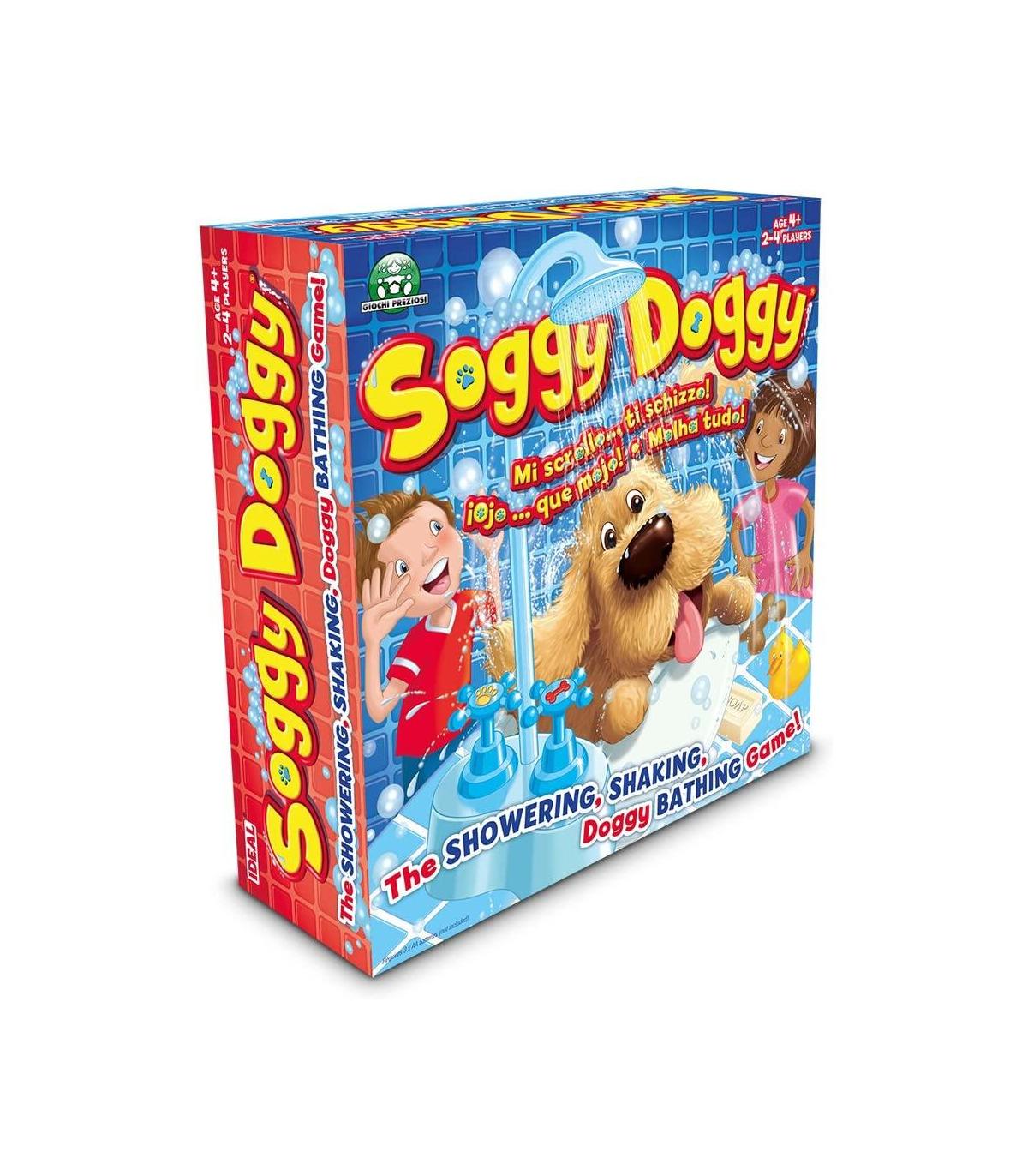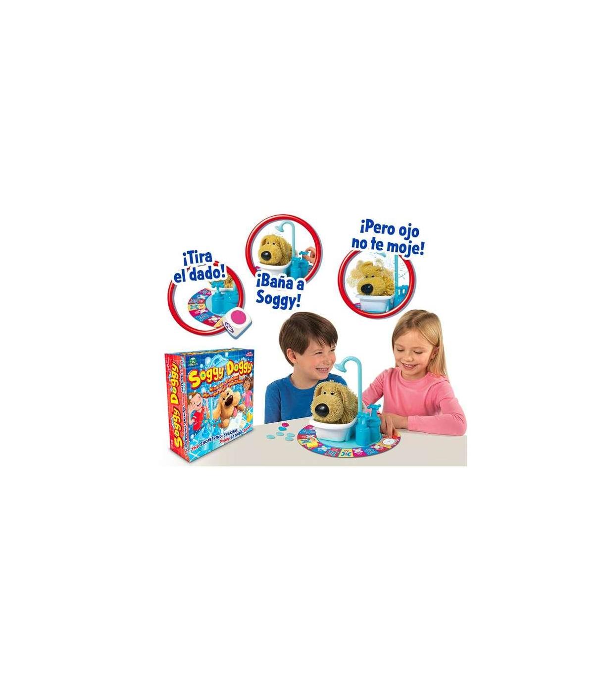 Soggy Doggy ¡Ojo que Mojo! Baña a tu perro Soggy Doggy recorriendo el tablero del juego pero ten cuidado ¡le encanta sacudirse el agua de encima! Si te moja tienes que volver al inicio del juego.