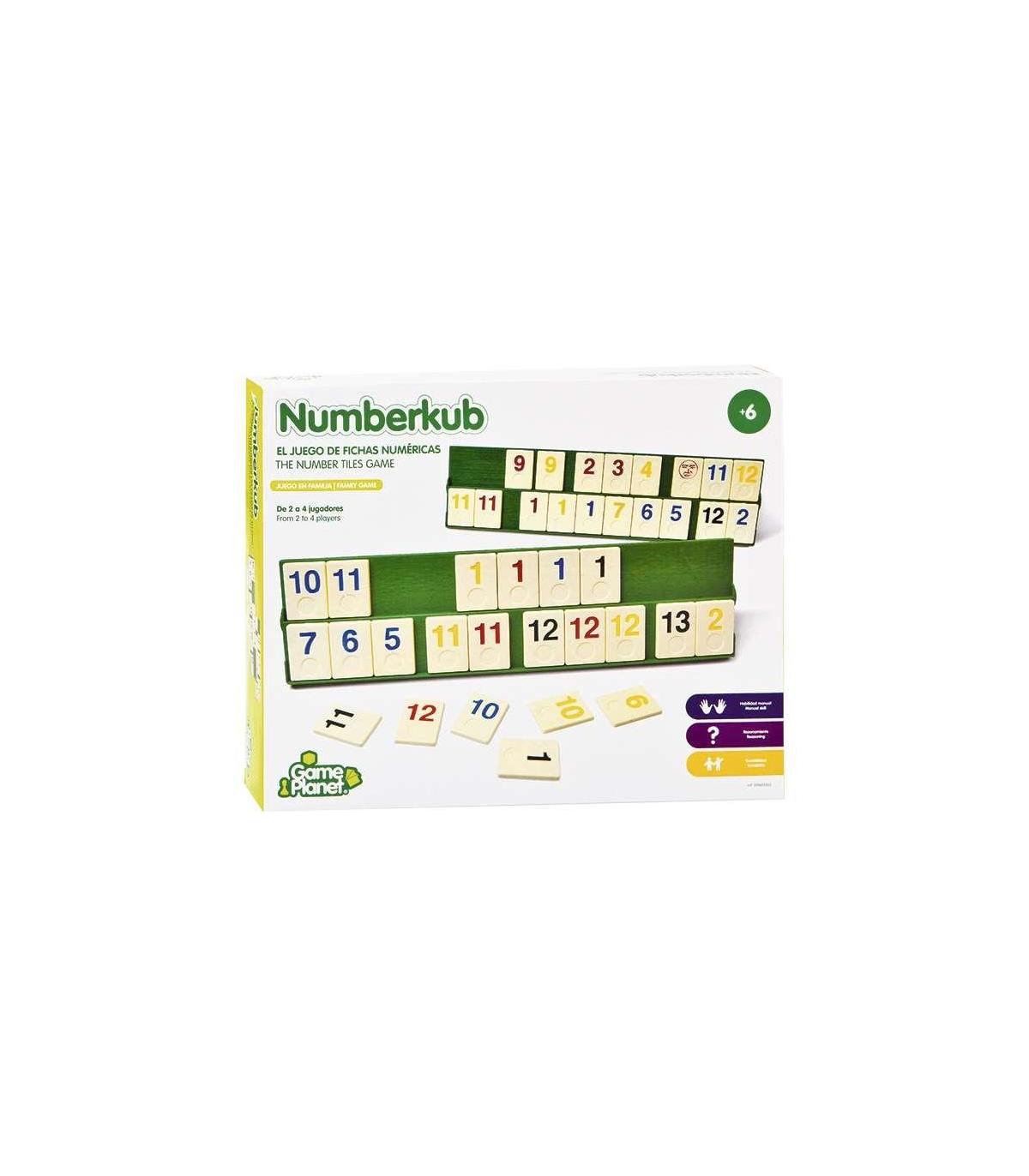 Numberkub El juego de fichas numéricas. ¡Agudiza tu ingenio y sé el primero en poner todas tus fichas en el tablero! Deberás crear combinaciones de numeros y colores para quedarte sin fichas antes que nadie.