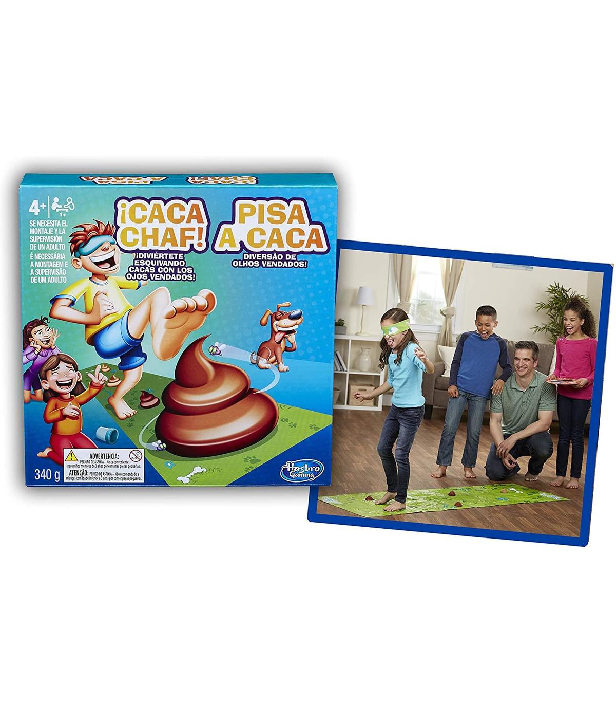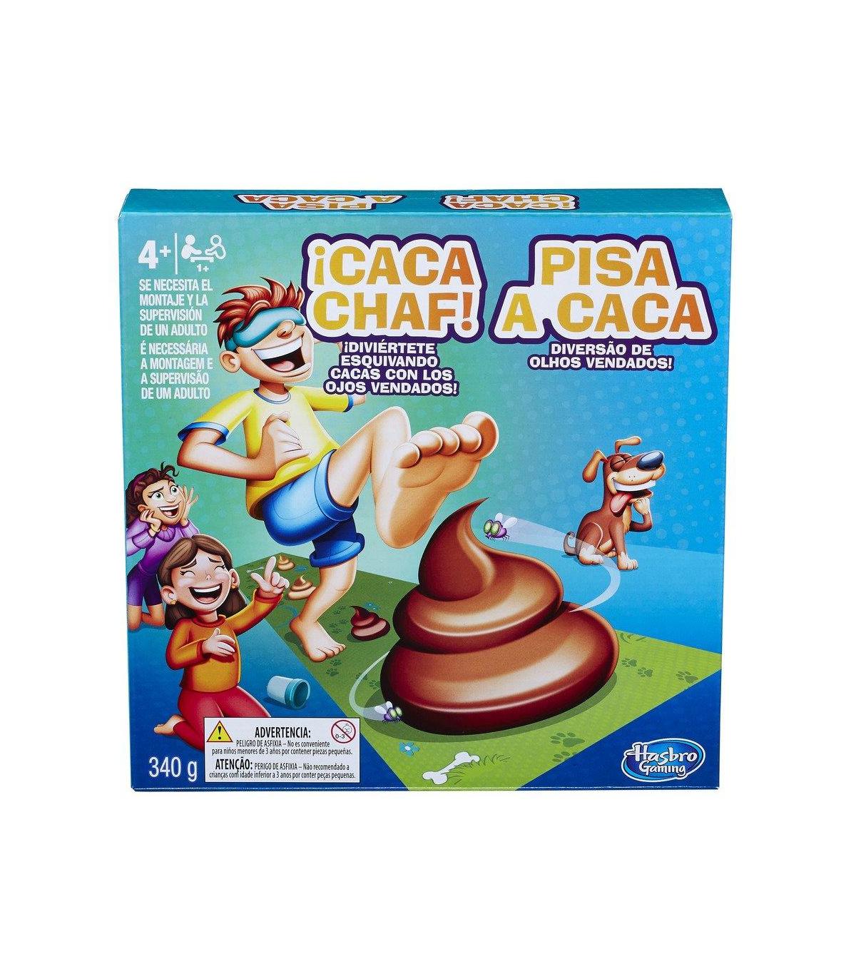 ¡Caca Chaf! Pásalo en grande evitando pisar cacas con los ojos vendados Moldea la plastilina incluida para crear montones de caca El jugador que pise menos cacas, gana Juega con tus amigos o juega a evitar pisar las cacas tú solo