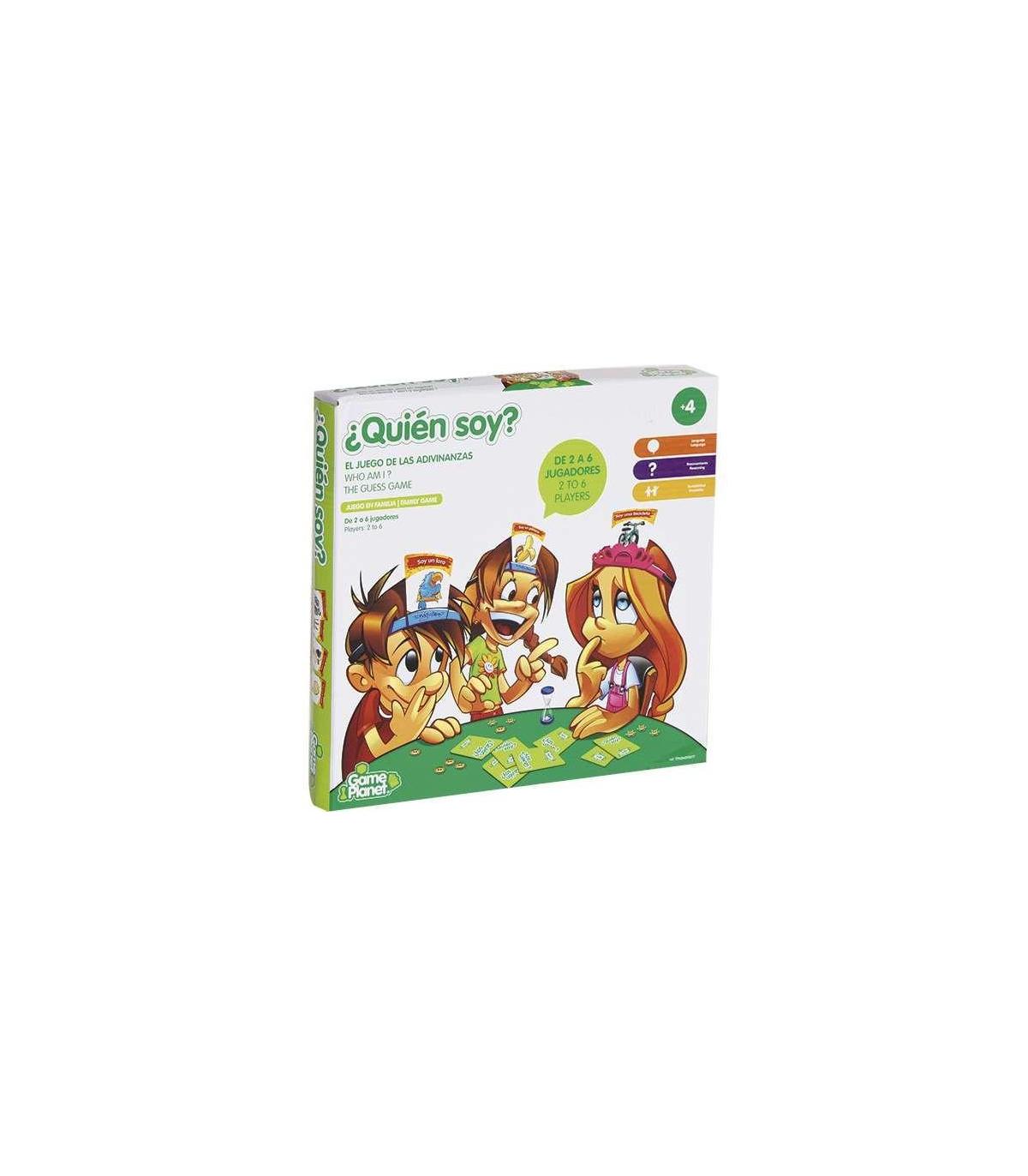 ¿Quién Soy? Coloca la cinta y la carta secreta en tu frente. Comienza a hacer preguntas, el que primero descubra quién es ¡será el ganador! Contiene: 2 cintas para la cabeza azules, 2 rosas, 50 cartas, 1 reloj de arena, 10 fichas de color amarillo, 10 fichas de colo