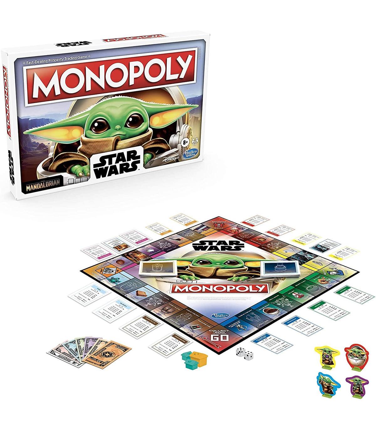 Imagina que viajas por la galaxia con el Niño, cariñosamente conocido como "Bebé Yoda". Este juego de mesa Monopoly: Star Wars cuenta con diseño y temas inspirados en la serie de televisión de acción real The Mandalorian, transmitida por Disney Plus. Recorre el tablero con el token del Niño, comprando y vendiendo escondites y casas de reunión, y sigue las instrucciones de las tarjetas de Cantono y de Puck de Recompensa. El último jugador que quede después de que todos los demás se hayan ido a la quiebra gana el juego.