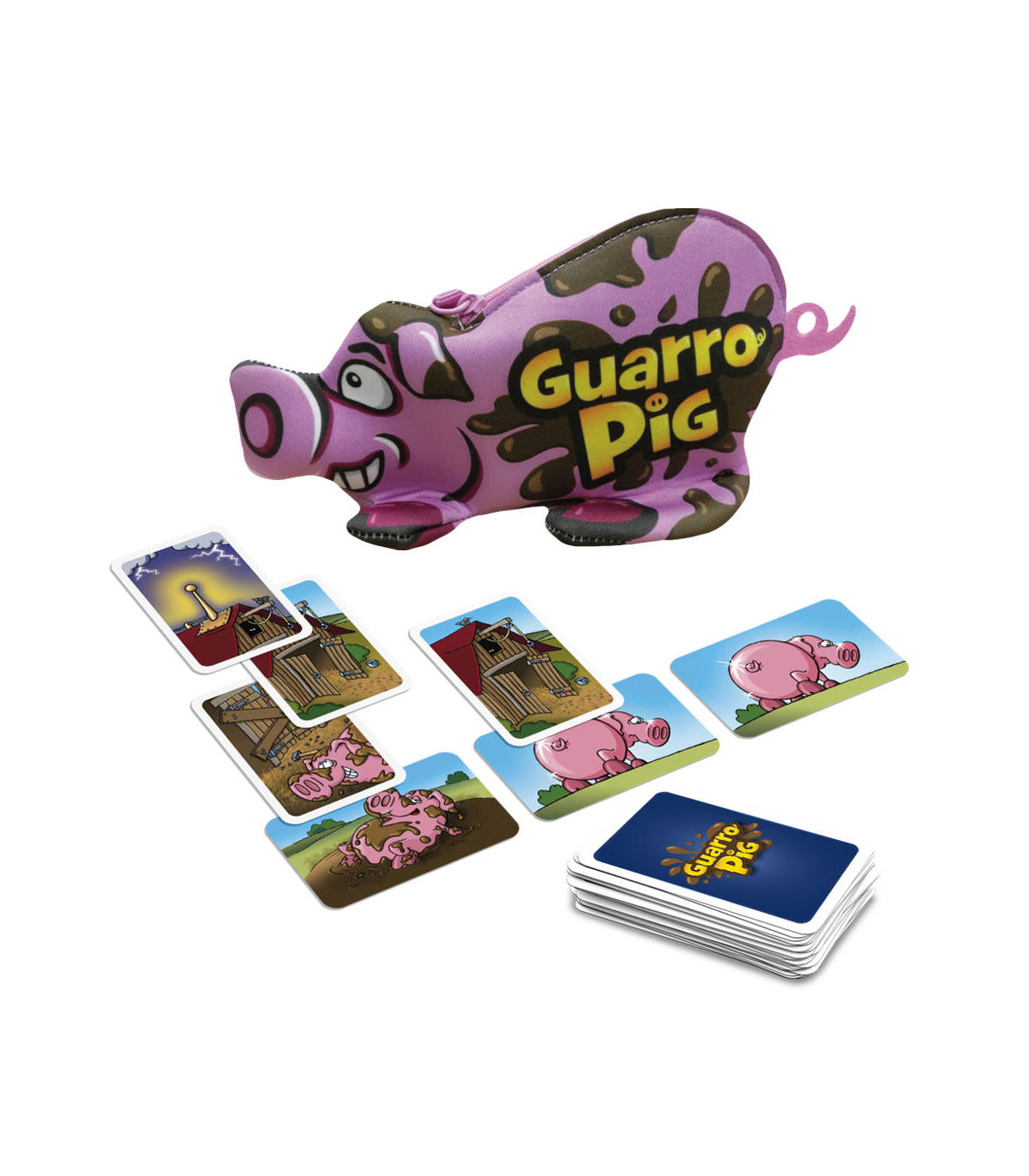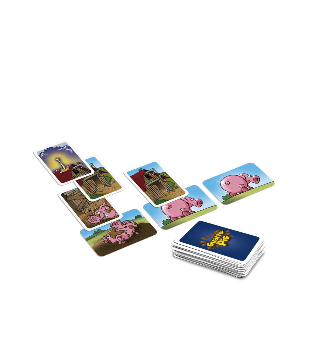 En este sencillo y rápido juego de cartas deberás conseguir que todos tus cerdos se embarren antes que los del resto para ganar. Limpia a los cerdos de los demás, evita la lluvia y al granjero con su cepillo y esconde a tus cerdos en el establo para ponerlos a salvo ¡en su feliz inmundicia!