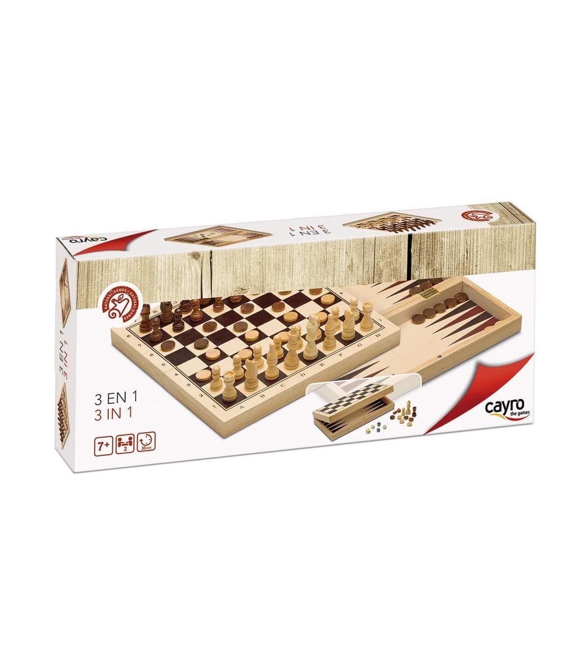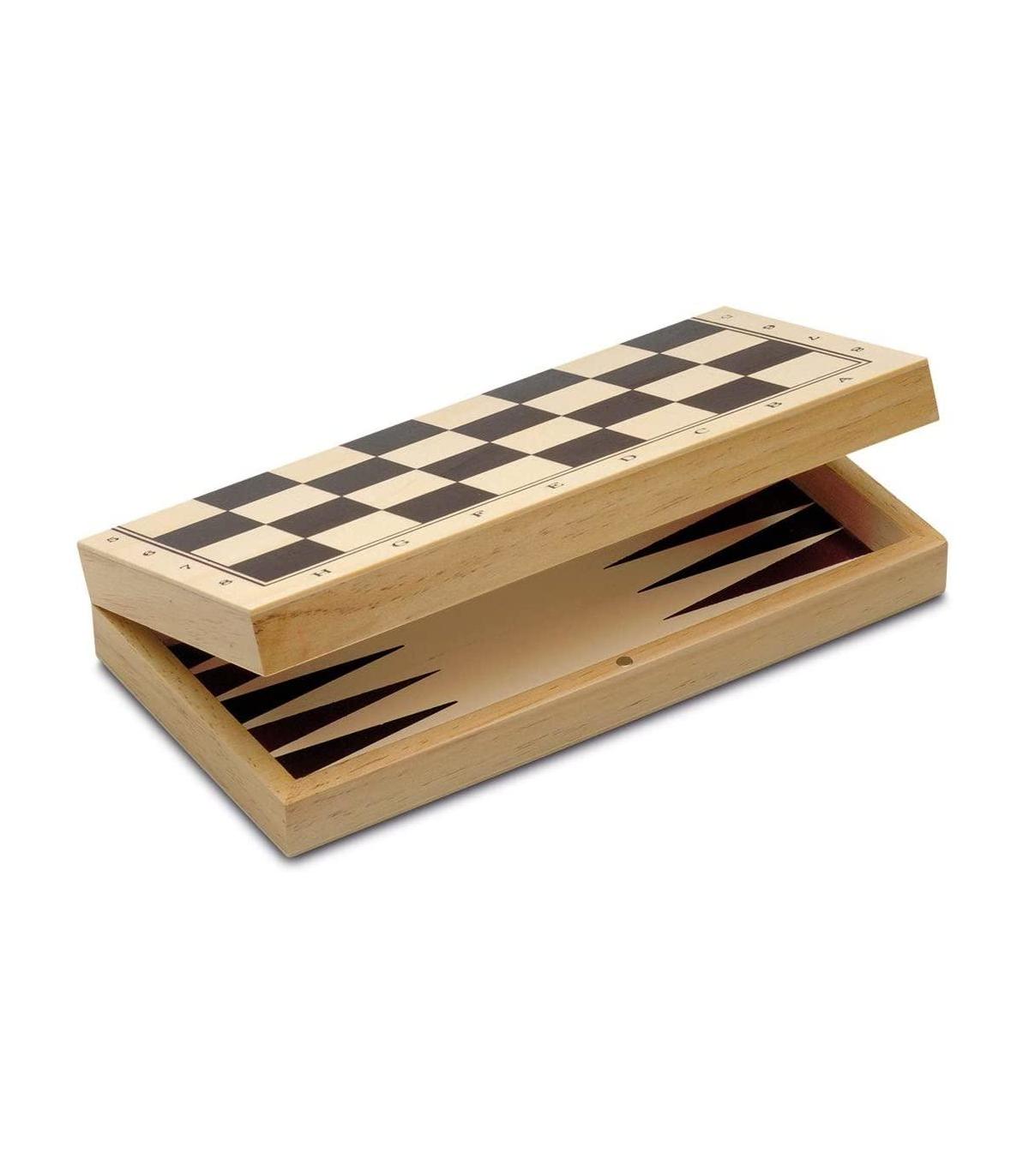 Completo conjunto de juegos de mesa para jugar en familia o con amigos. Incluye los siguientes juegos: Ajedrez, Damas, Backgammon, Parchís, Oca, Mikado