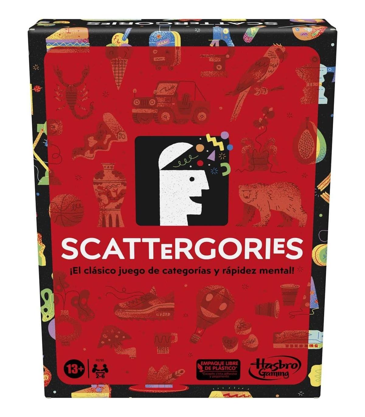 Scattergories Refresh CLÁSICO JUEGO DE CATEGORÍAS Y DE RAPIDEZ MENTAL: Intenta derrotar a tus oponentes con respuestas originales en esta versión del rápido juego de fiestas Scattergories para adultos y adolescentes PIENSA RÁPIDO Y SÉ CREATIVO PARA GANAR PUNTOS: En el clásico juego Scattergories, escribe el nombre de cosas que coincidan con la letra sacada, desde comida hasta estrellas de cine. Tu respuesta solo cuenta si nadie más la tiene. Tras 4 rondas, ¡el jugador con más puntos será el ganador! FIRMES CARPETAS PARA MUCHA DIVERSIÓN: Este juego de mesa familiar para 2 o más jugadores incluye carpetas que sirven como soportes para escribir y en las cuales caben las listas y las hojas de respuestas AUMENTA LA EXPERIENCIA DE JUEGO CON LAS HERRAMIENTAS ONLINE: Escanea el código QR, o sigue el enlace online, para usar el cronómetro y el dado con letras virtual en tu móvil DIVERTIDO JUEGO FAMILIAR PARA 6 PERSONAS: Es un emocionante juego para jugar con tu familia y amigos. ¡Saca el juego y diviértete jugando los fines de semana, en las reuniones y días de fiesta!