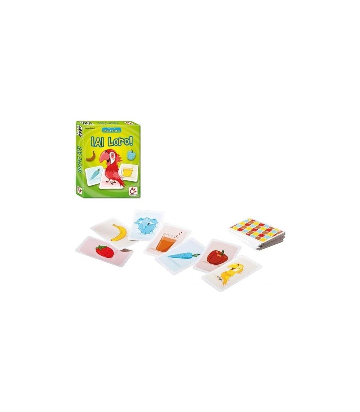 ¡Al Loro! es un divertido juego de cartas de observación y reflejos. Un juego rápido para jugar entre amigos o en familia. Para 2-4 jugadores a partir de los 6 años.