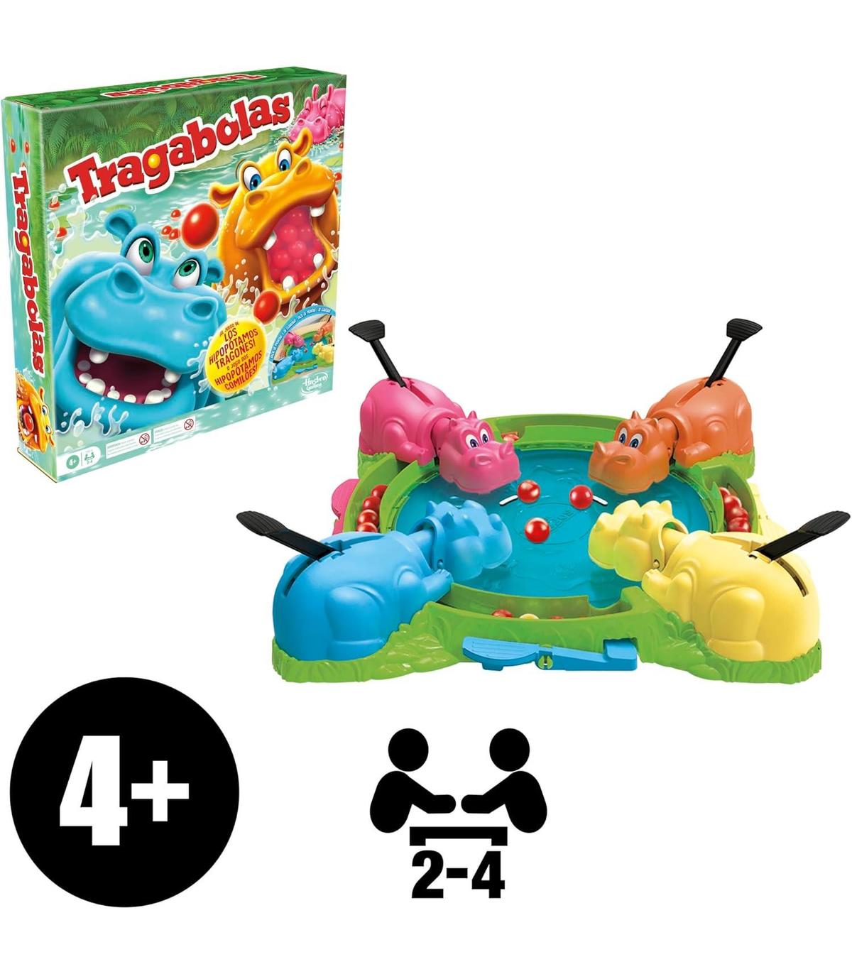 EL JUEGO DE LOS HIPOPÓTAMOS TRAGONES: Disfruta el clásico juego Tragabolas Comilón que los niños y niñas en edad preescolar conocen y adoran, con recarga instantánea de canicas, e instalación y almacenamiento fáciles