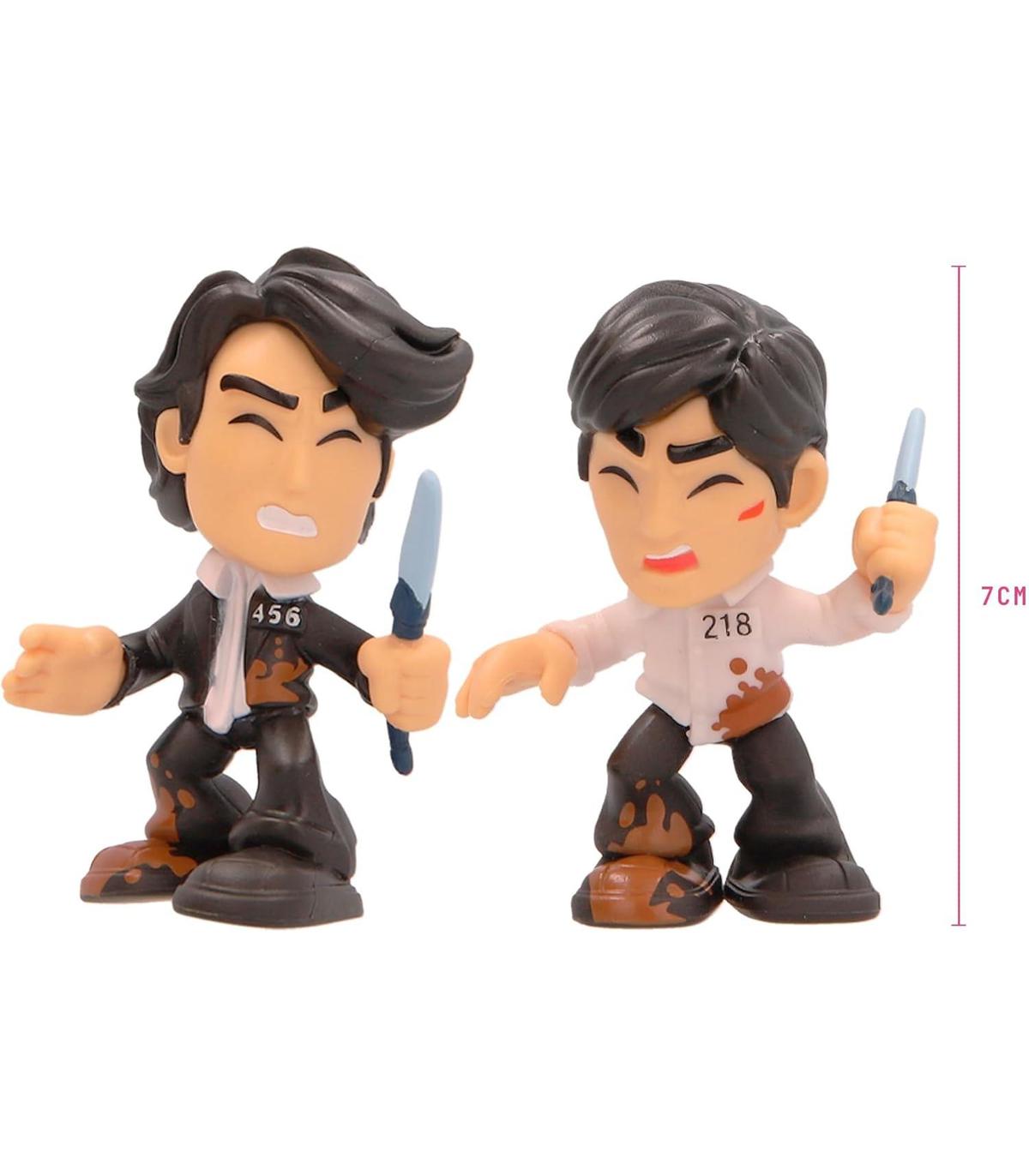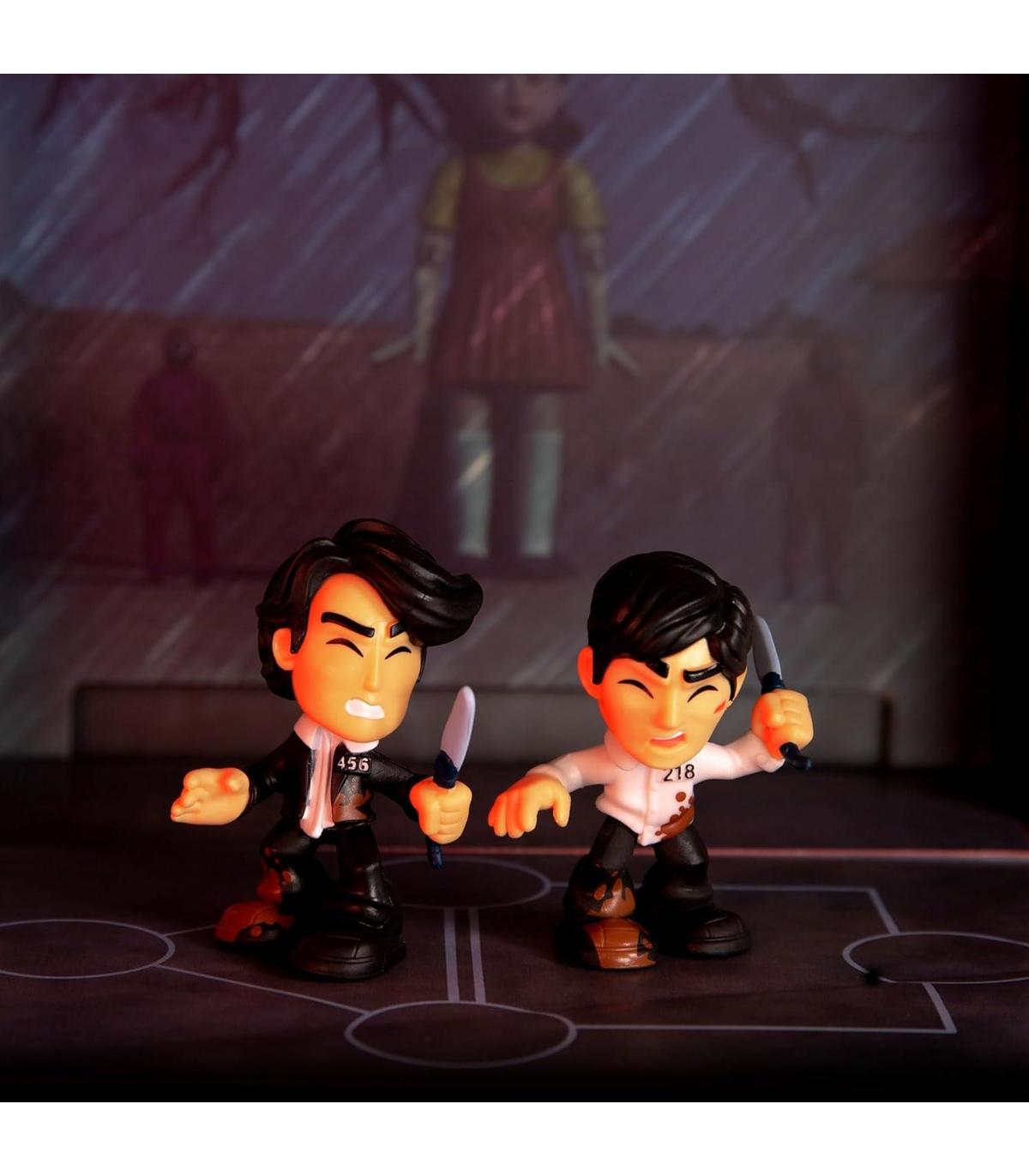 Juego del Calamar Box Challenge 03 En el desafío final del Juego del Calamar, los concursantes se enfrentan a un juego de alto riesgo que pone a prueba sus habilidades y determinación en un enfrentamiento dramático. El ambiente es intenso y lleno de suspenso, con el resultado determinando el destino de los jugadores restantes Conjunto para jugar y exponer: cada caja está decorada por dentro para recrear el escenario donde ocurre el desafío final. Los dos personajes clave se enfrentan en un enfrentamiento apasionante que determinará su destino final Dos figuras de *Squid Game* que te pondrán al borde del asiento. Da vida a los personajes icónicos de la exitosa serie de Netflix. Consigue a los jugadores 456 y 218, enfrentándose a las dificultades del juego final, con su ropa sucia y desgastada por la batalla QUE COMIENCE EL JUEGO: Lanza el dado; cada forma indica un movimiento. Ten cuidado de no ser atrapado por tu enemigo 3 veces o perderás el juego final Ya sea para exhibir en una estantería o incorporadas en una vitrina, estas figuras sirven como recordatorios del emocionante drama y los personajes cautivadores que capturaron la imaginación del mundo. Sumérgete en el apasionante mundo de "Squid Game" como nunca antes Con las 2 figuritas, los auténticos fans de Squid Game una conexión tangible con la serie. Exhibir las figuras en una estantería o en una colección puede evocar recuerdos de momentos clave de la serie y generar conversaciones entre otros fans El Juego del Calamar es una serie con contenido para adultos, contiene violencia. No es adecuado para niños