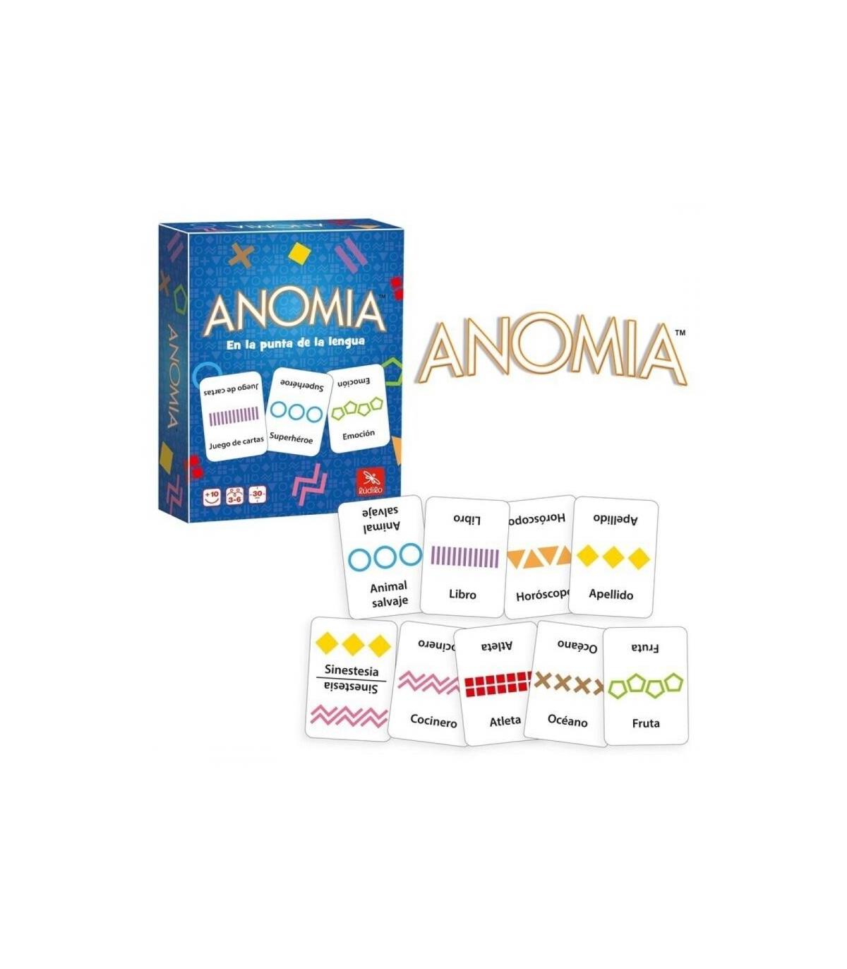 Anomia es un juego de cartas con una propuesta muy divertida. ¿Has pensado alguna vez en la cantidad de datos que pasan por nuestros cerebros cada día? En este frenético juego debes estar muy atento a los símbolos y ser el más rápido en decir una respuesta válida para la categoría de otro jugador. ¡Y ten cuidado! Las normas pueden cambiar en cualquier momento.