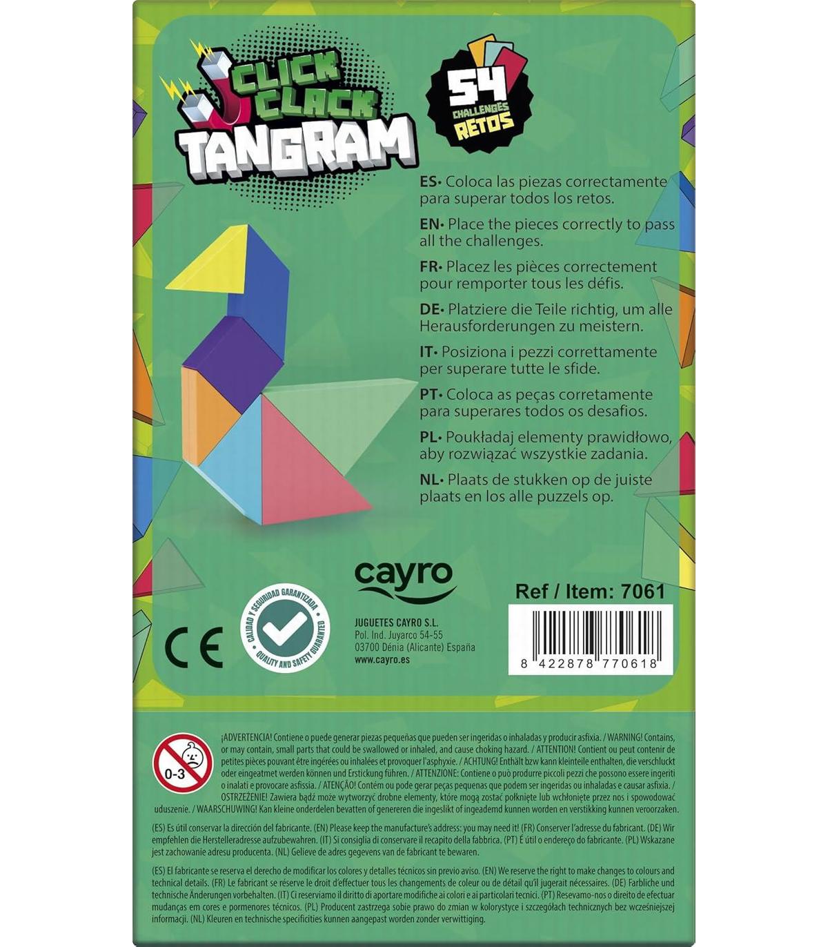 Click Clack Tangram es un juego de mesa para niños donde tendrás que conectar todas las piezas para superar cada uno de los retos.