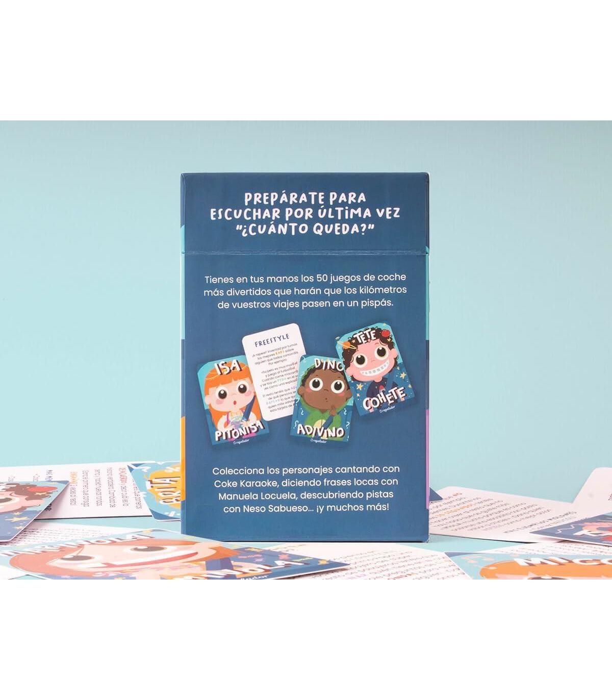 ¿cuanto Queda? El juego más divertido para amenizar los viajes en coche con los niños 50 actividades originales, personajes y pruebas diferentes con las que los viajes en coche pasarán volando CALIDAD: Sus cartas plastificadas de alta calidad hacen que no se estropeen por mucho que los niños tengan las manos pringosas. FÁCIL: las normas de las diferentes pruebas vienen escritas en cada una de las tarjetas de una forma divertida para poder entender el juego fácilmente EL REGALO PERFECTO: ¡Para que los viajes en coche con los niños se pasen volando! Con su pequeño tamaño cabe perfectamente en el coche. Cuanto Queda es un juego de cartas con el que los más pequeños de la casa ( y los grandes también) disfrutarán de 50 nuevos juegos, personajes y pruebas diferentes para partirse de risa mientras viajáis en coche. Un regalo original que conseguirá que los viajes se pasen volando. ¡Inventa saludos locos con Solecito Saludito, juega al Stop sobre ruedas con Tete Cohete o gana el concurso de palabras con Teo Deletreo! Descubre todos los juegos que te traen los personajes de ¿Cuánto queda? Tarjetas XL para poderlas leer cómodamente y formato estrecho para poder guardarlas en cualquier hueco del coche. Con ¿Cuánto queda? desaparece por fin el aburrimiento viajando gracias a 50 nuevos juegos que mantendrán entretenida a toda la familia. ¡No querréis que el viaje se acabe! Cambia las cosas de sitio con Neso Sabueso e intenta que los demás no se den cuenta, demuestra tus habilidades en freestyle con Gero el Rapero, invéntate las preguntas más disparatadas con Manuela Loculela… ¡y mucho más!. Vayas donde vayas, la diversión no termina mientras viajas. Prepárate para escuchar por última vez “¿Cuánto queda?”