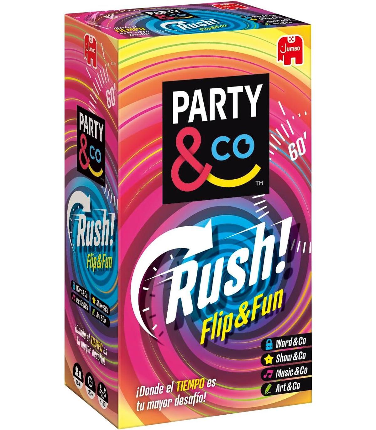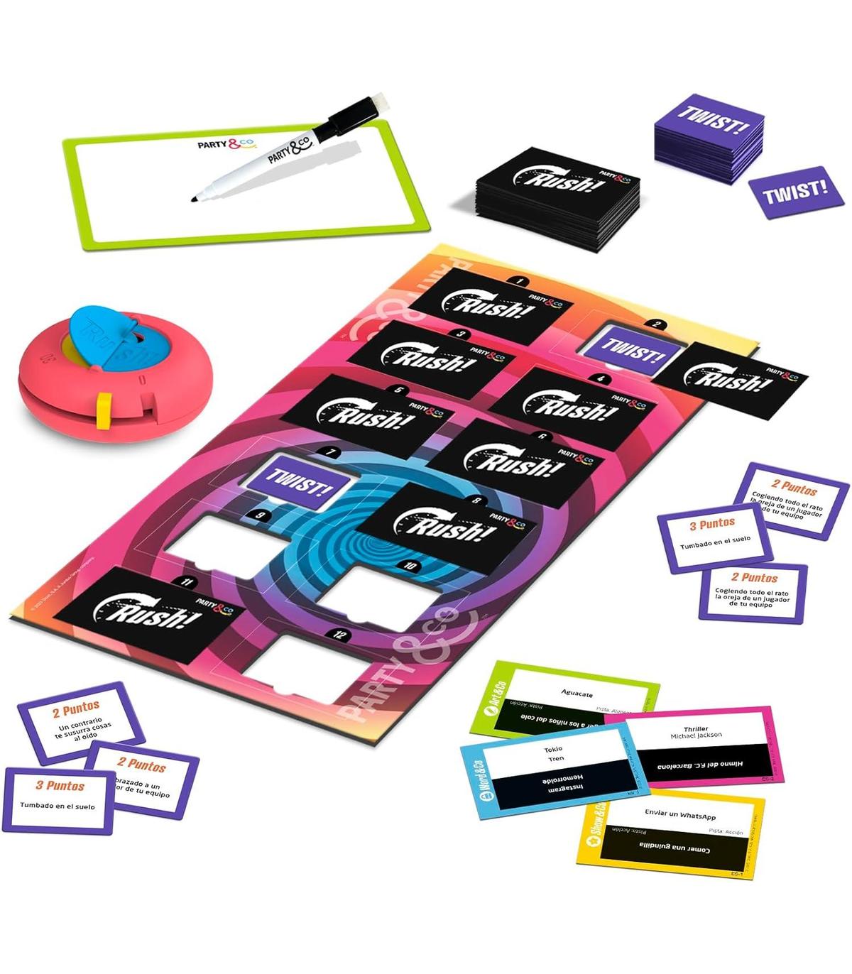 Nuevo Party & Co. Rush, ¡donde el tiempo es tu mayor desafío! Esta edición más rápida y ágil transforma cada partida en una emocionante carrera contrarreloj. Con 4 categorías únicas: Word & Co., Show & Co., Art & Co., Music & Co.. Con twists inesperados que crean momentos inolvidables y risas interminables. ¡El juego más loco ha llegado! Diversión en Equipo: El juego mesa se juega por equipos, que deberán superar 5 pruebas distintas: Palabras prohibidas, la Pregunta, a Dibujar, Mímica y sonidos y Un, dos, tres. Party & Co. Original: +14 años, Máximo 4 equipos de 2 a 5 personas. Ideal para adolescentes y adultos, este juego de mesa está recomendado para mayores de 14 años. Los juegos fiesta como este se convierten en el centro de atención en cualquier evento social. Party and Co Original Incluye 400 tarjetas con 2000 pruebas para una diversión sin fin.