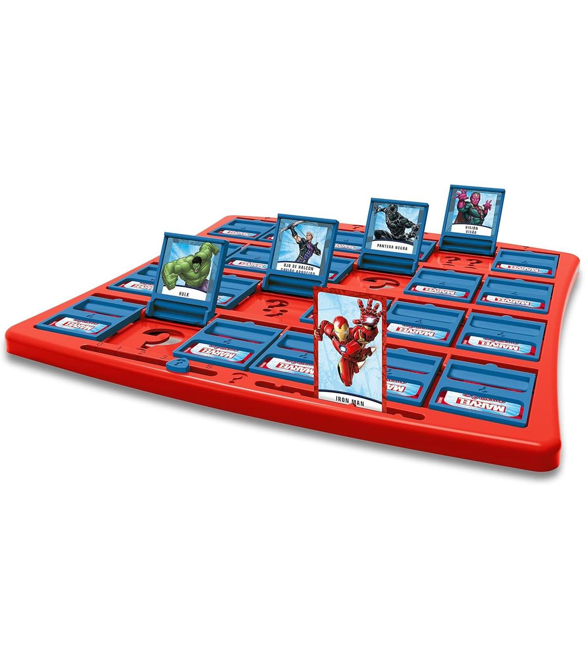 ¿quien Es Quien? Marvel En el universo de Marvel, los jugadores tienen la tarea de descubrir a los héroes y villanos más poderosos como Spider-Man y Iron Man en una épica partida de quién es quien. Un juego clásico para 2 jugadores donde cada uno elige una carta de personaje y hace preguntas de sí o no para adivinar el personaje misterioso del oponente antes de que él adivine el tuyo. Quién Es Quién Español es ideal para todos, desde los 6 años, tanto para niños, adultos como para fans de Marvel. Perfecto para cualquier lugar. Contenido: 2 bandejas de juego, 4 soportes, 4 selectores de personajes, 2 deslizadores de puntuación, 2 hojas de personajes con 24 tarjetas pequeñas, 24 tarjetas de personajes, 2 hojas de instrucciones, 1 tarjeta Super Top Trump. Ideal para regalo niña 6 años o niño 6 años, perfecto para los fans de Marvel. Un regalo épico para superhéroes en formación.