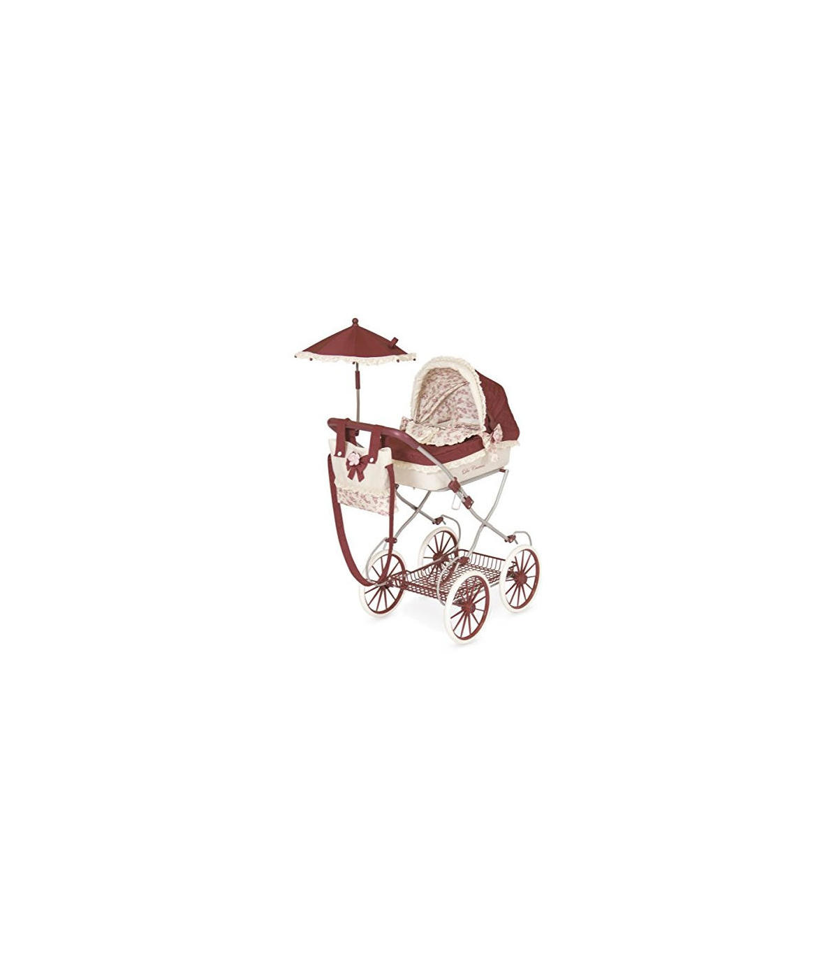 Coche de Muñecas Martina Plegable El coche de Muñecas Martina plegable en color granate y beige es perfecto para pasear con tu muñeca. Dispone de bandeja portaobjetos, bolso y sombrilla.