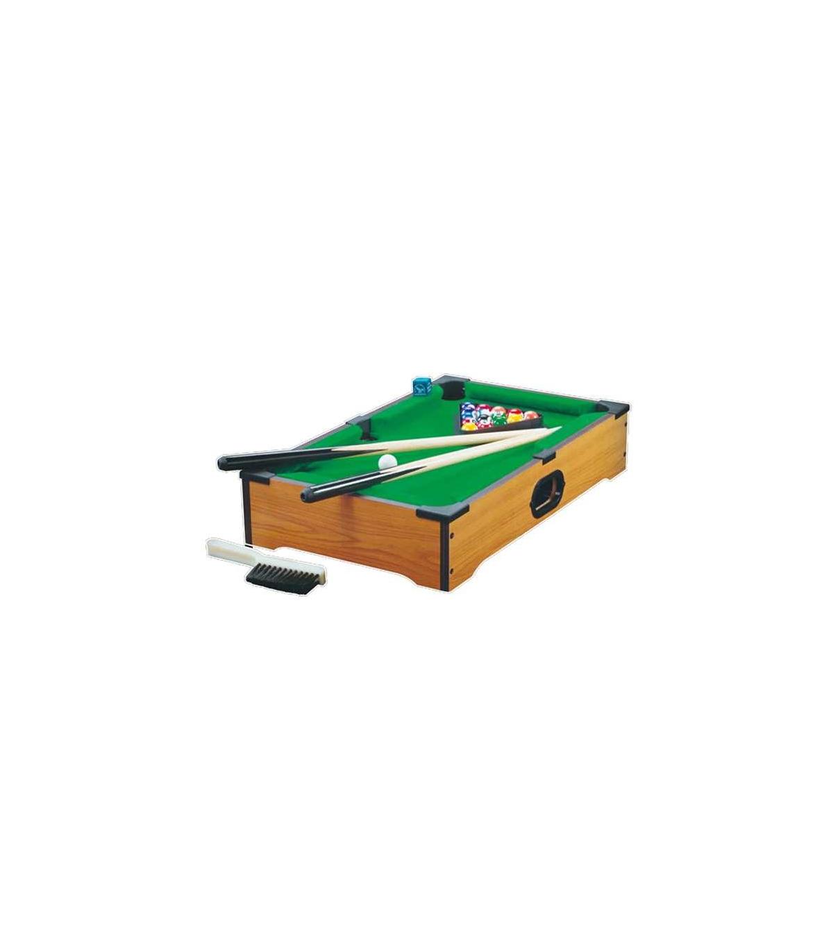 Billar Sobremesa ¡Practica Tus Carambolas! El juego incluye la mesa Billar de sobremesa, 15 Bolas de colores, 1 Bola blanca, 2 Tacos de billar, 1 Tiza, 1 Triángulo y 1 Cepillo.