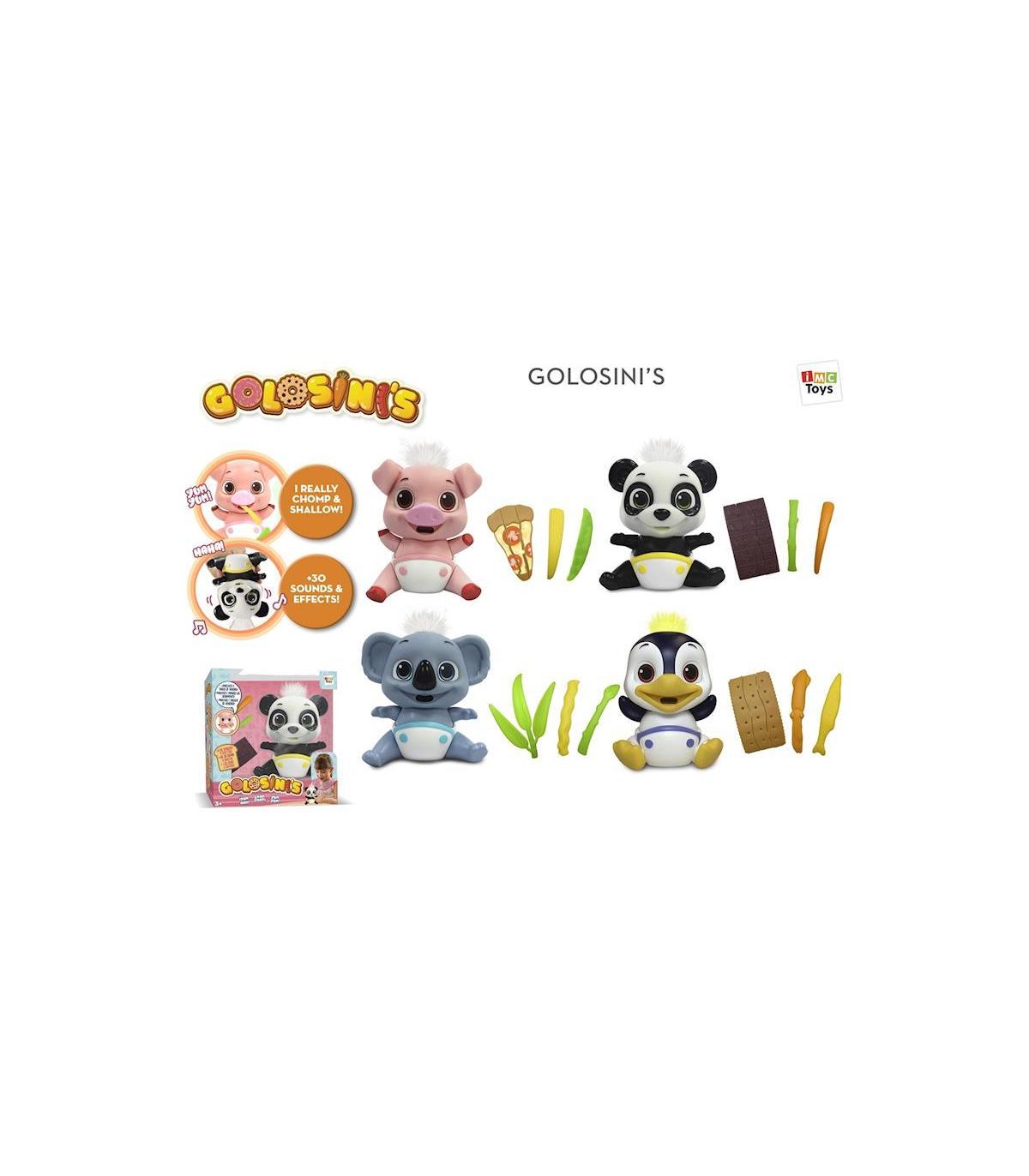 Golosini's Encantadores animalitos bebés a los que puedes dar de comer con 5 piezas diferentes de comidas. Mientras comen hacen sonidos divertidos y una vez terminen podrás encontrar la comida en el pañal.