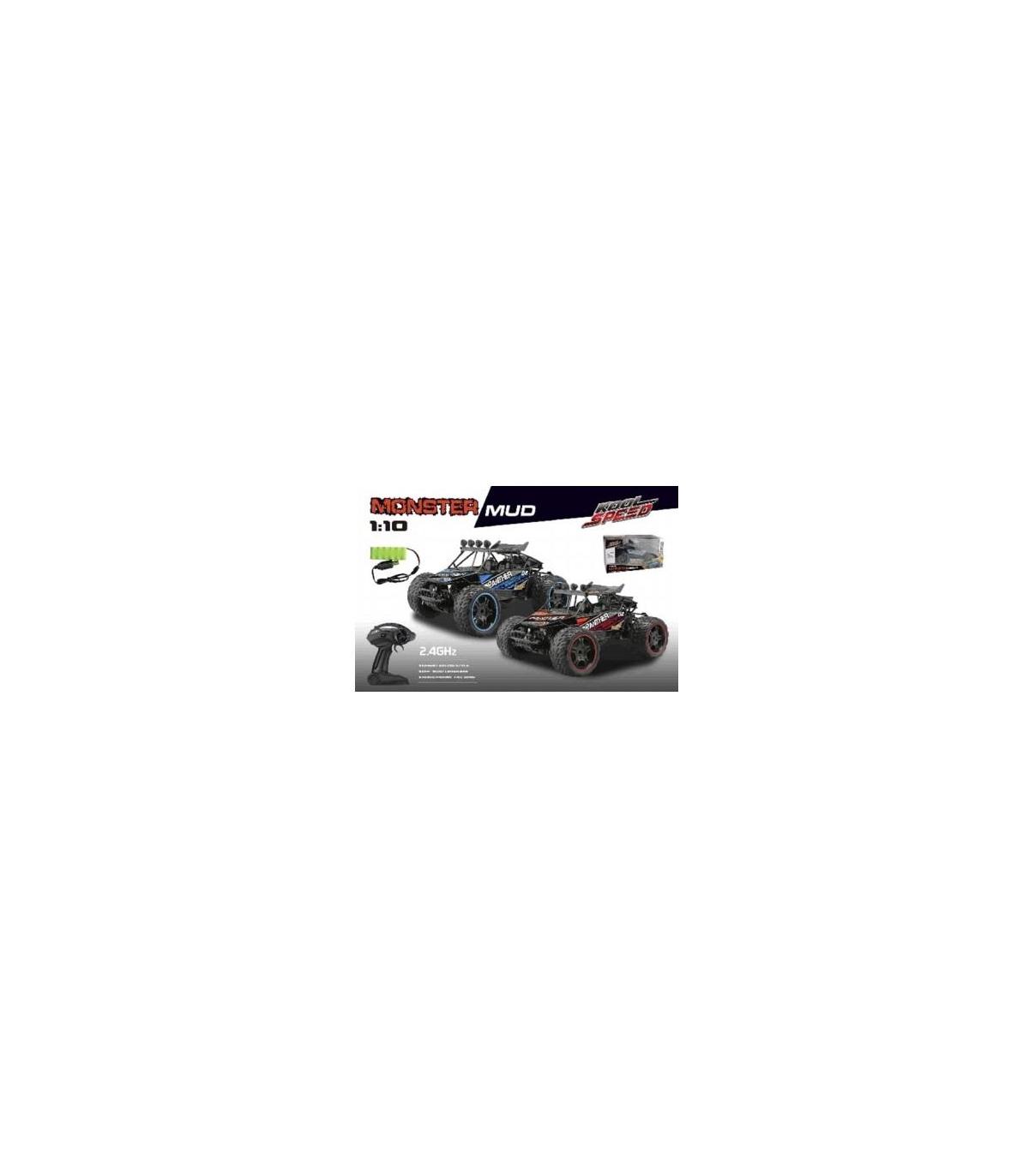 Coche RC Monster Mud E1:10 Fantástico coche radio control Monster Mud. Escala 1:10. Incluye batería y USB cargador. Hay dos modelos diferentes, puedes elegir entre el coche azul y el rojo.