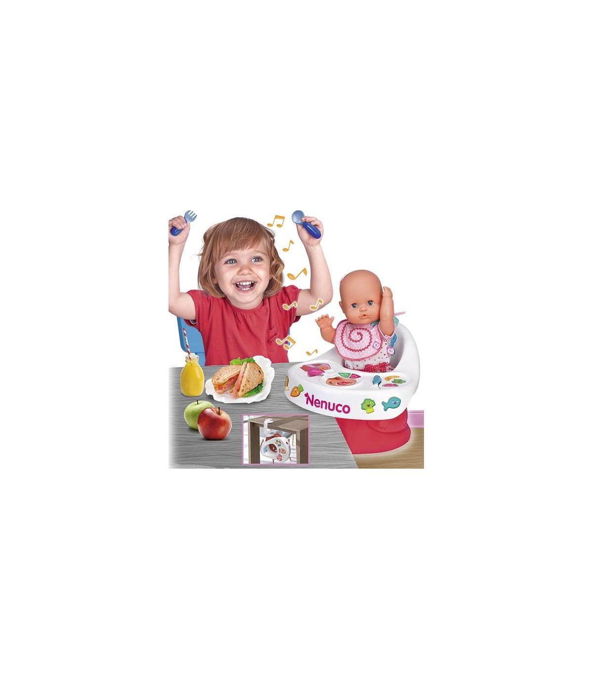 Nenuco Sillita Come Conmigo Pon al muñeco muñeco Nenuco en su sillita de comer motivará a tu peque en la hora de la comida, emite sonidos que refuerza los hábitos saludables.