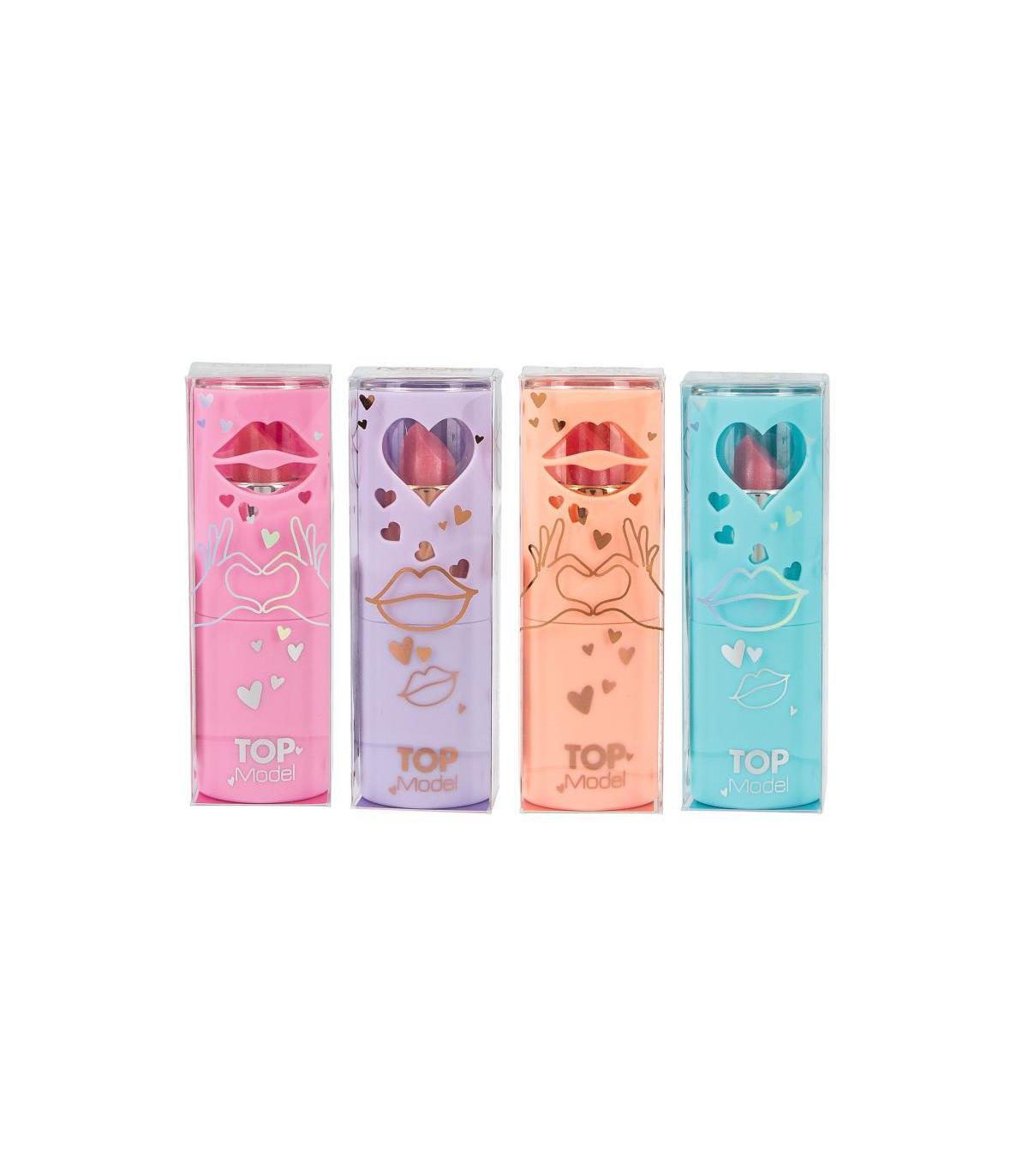 Beauty and me. Los pintalabios de la colección Beauty de TOPModel en fucsia y rosa tienen una cubrición ligera y un aroma maravilloso (fucsia con aroma a vainilla; rosa con aroma a manzana). Se venden con empaquetados de 4 colores diferentes adornados con elementos metalizados impresos y ventana transparente en la tapa. Contenido: 3g de pintalabios por unidad.