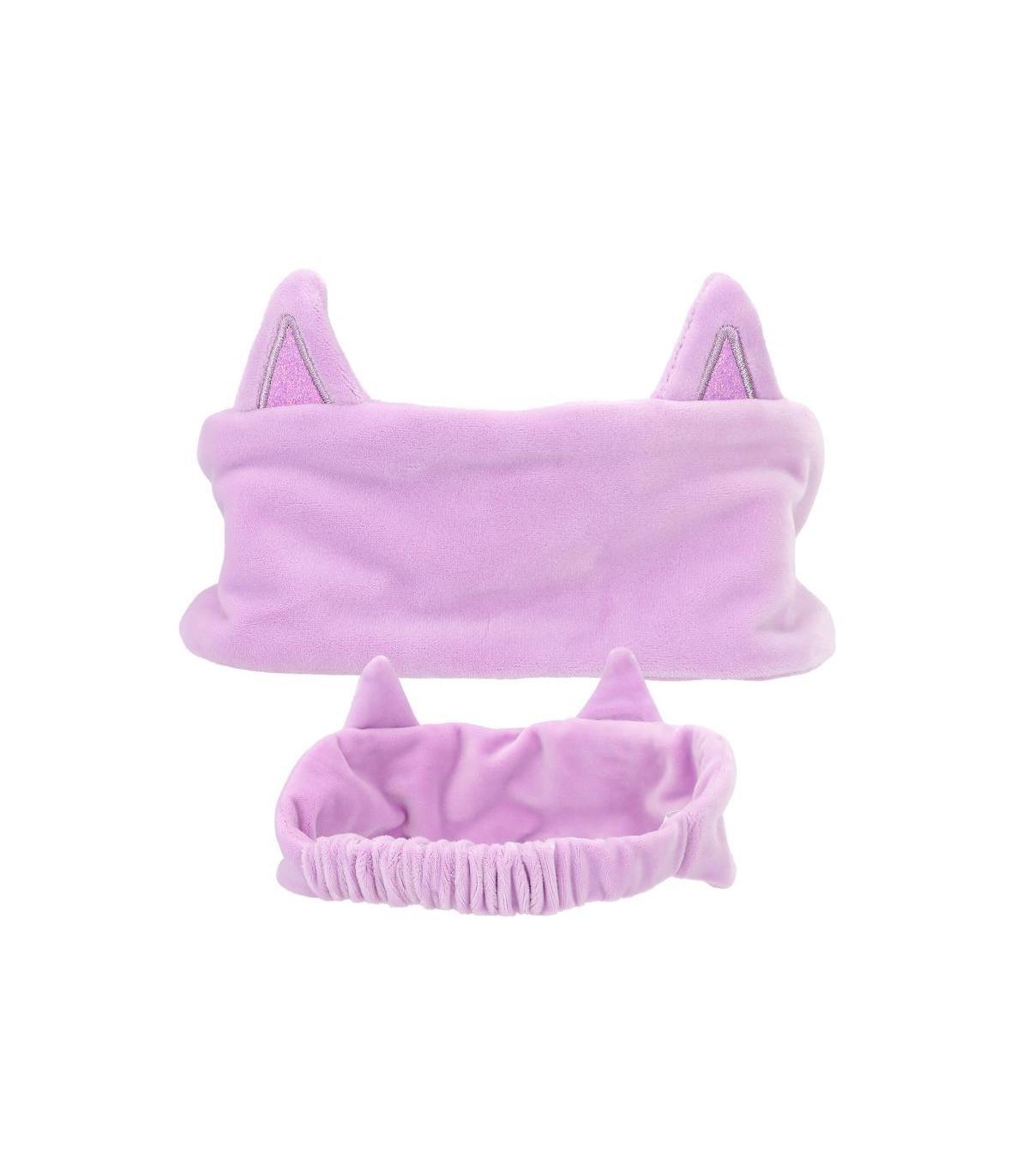 Topmodel Cinta Del Pelo Para Maquillaje Para la rutina diaria de belleza. Este turbante para estética es supersuave, de color lila pastel y lleva unas orejitas brillantes monísimas. Se sujeta muy bien gracias a la goma integrada.