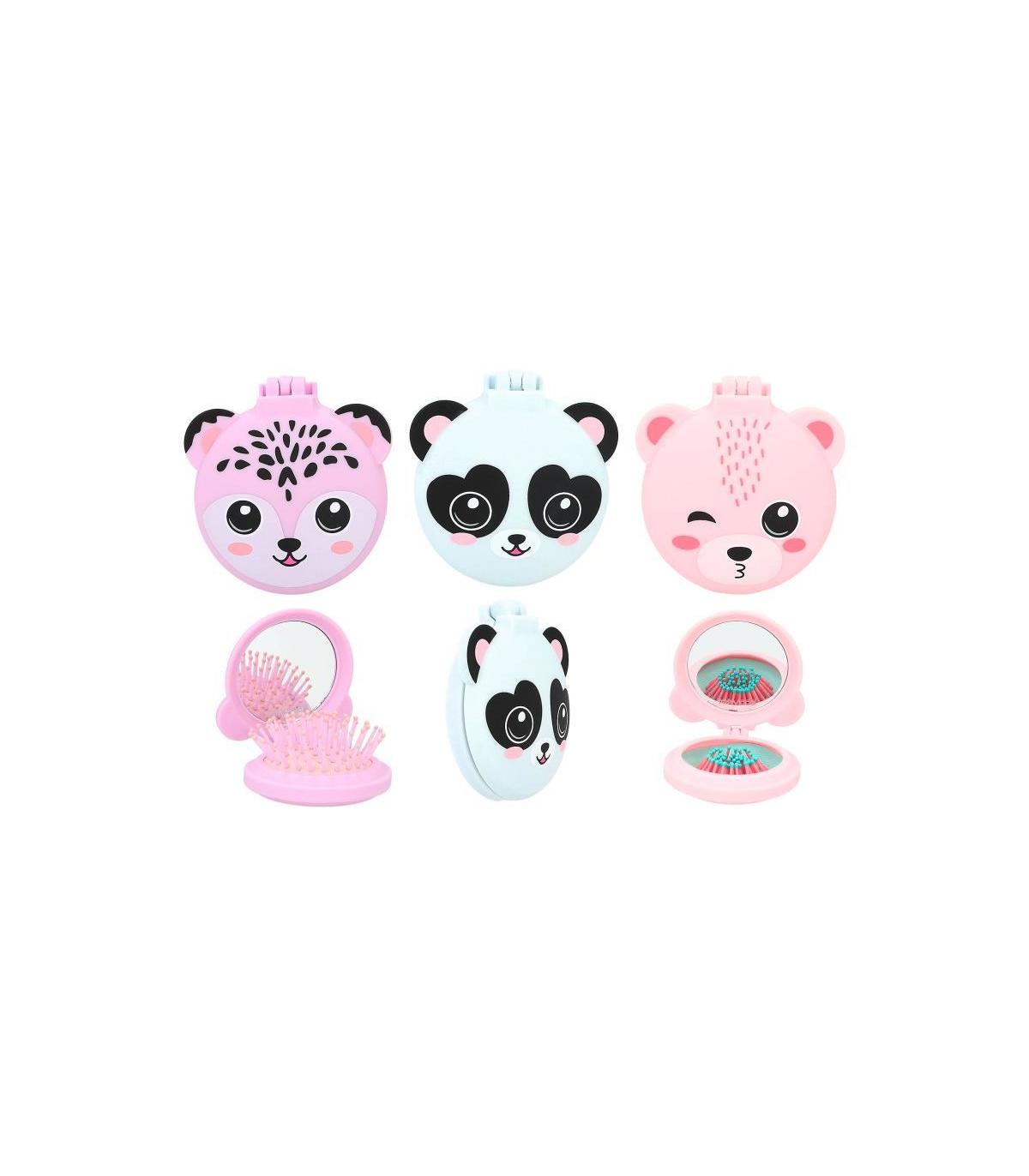 Para peinarse en un abrir y cerrar de ojos. Los cepillos desplegables de TOPModel con forma de oso tienen caritas preciosas y están rematados con unas orejitas monísimas. La superficie engomada les da un aspecto muy cool que, además, resulta muy agradable al tacto. Con espejo redondo en el interior. Disponibles tres modelos con caras de ositos distintos en tres colores (lila, rosa y celeste).