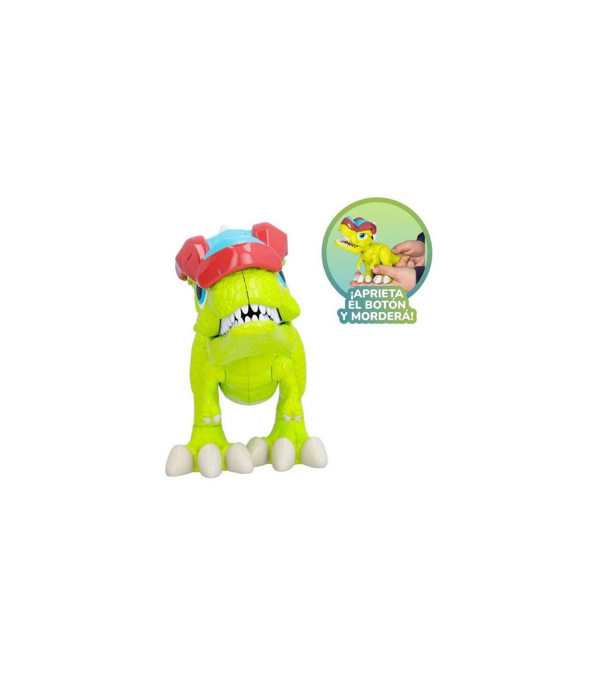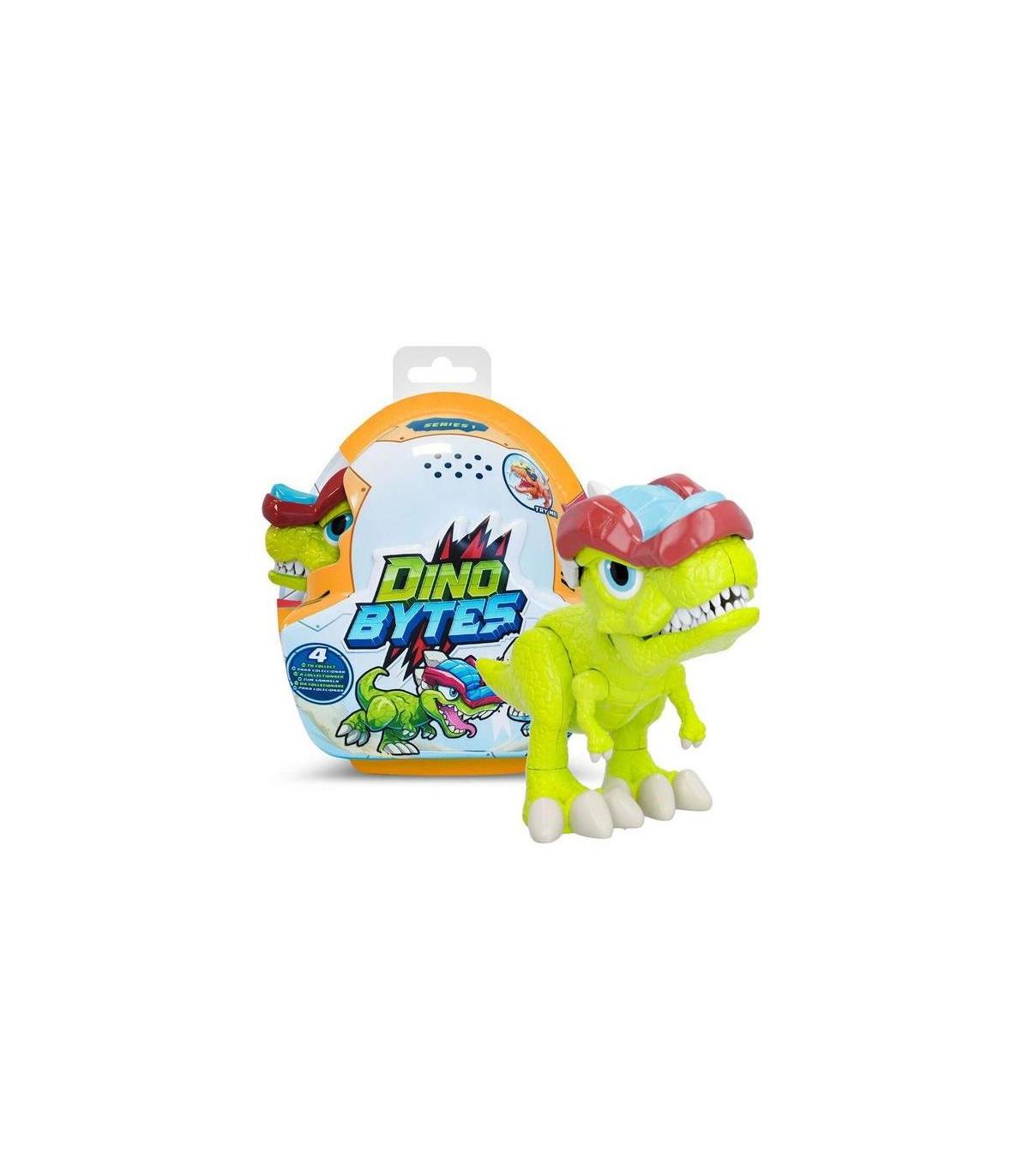 Descubre a Rexy, el dinobyte inspirado en un Tiranosaurio Rex. Cuando un dino logre quitar el casco al contrario, ganará la batalla. Controla sus ataques por la cola: ¡puedes rotarla para mover su cabeza y apretar el botón para soltar un mordisco! Descubre la nueva marca de dinos de batalla: DINOBYTES. Lucha con tus amigos para ver quien se convertirá en el nuevo rey de Dinozone. ¡Hay 4 dinos diferentes para coleccionar! Estos dinos están inspirados en especies de dinosaurios bípedos y van equipados con cascos de batalla. Cuando un dino logre quitar el casco al contrario, ganará la batalla. Controla sus ataques por la cola: ¡puedes rotarla para mover su cabeza y apretar el botón para soltar un mordisco!