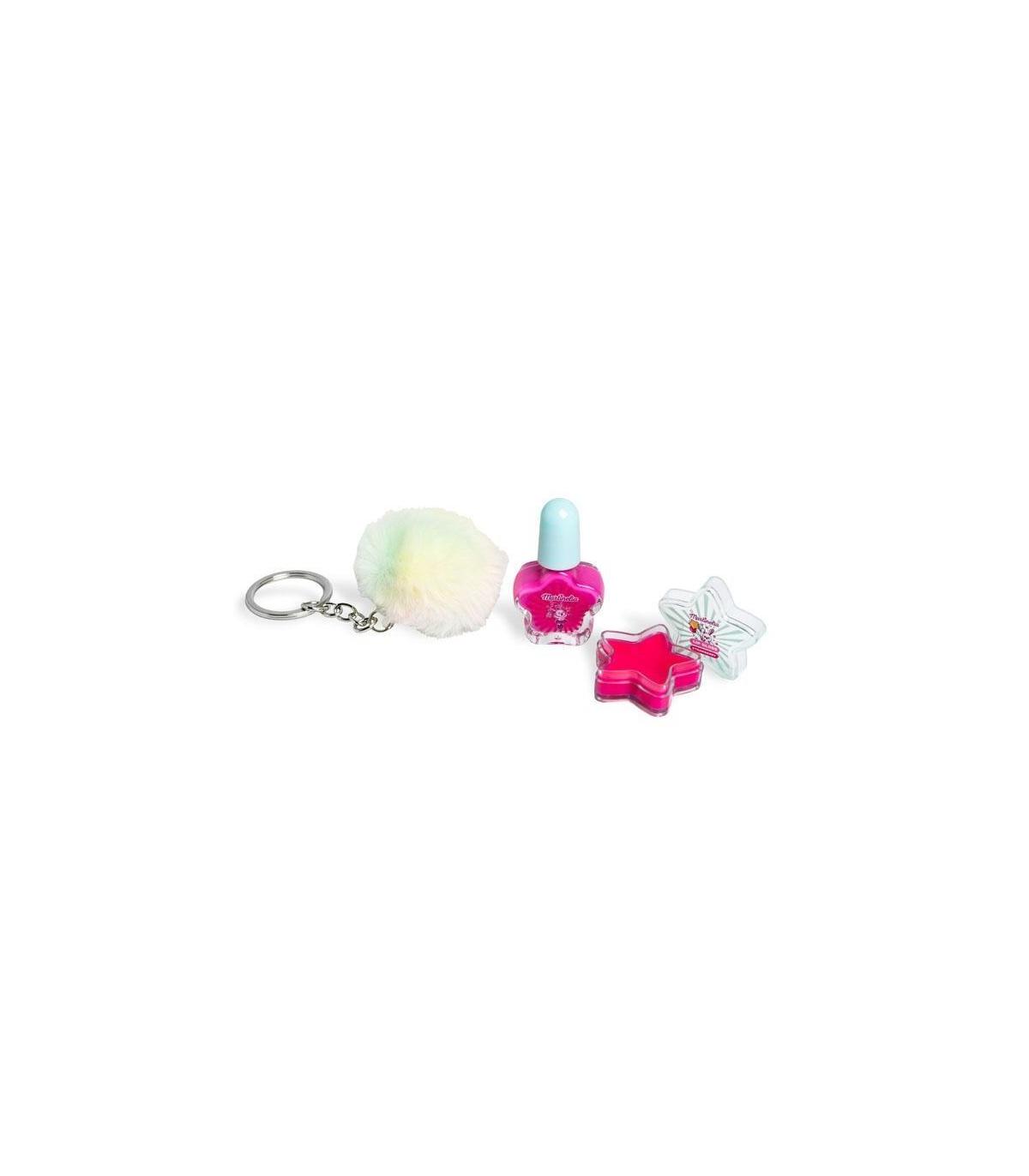 Este mini kit encantará a l@s más pequeñ@s de la casa, contiene un brillo de labios con un aroma delicioso y un esmalte de uñas a juego. Viene con el llavero más divertido para colocar en su sitio favorito: en la mochila para ir al cole, en las llaves, en el estuche... ¡Dónde quieran!