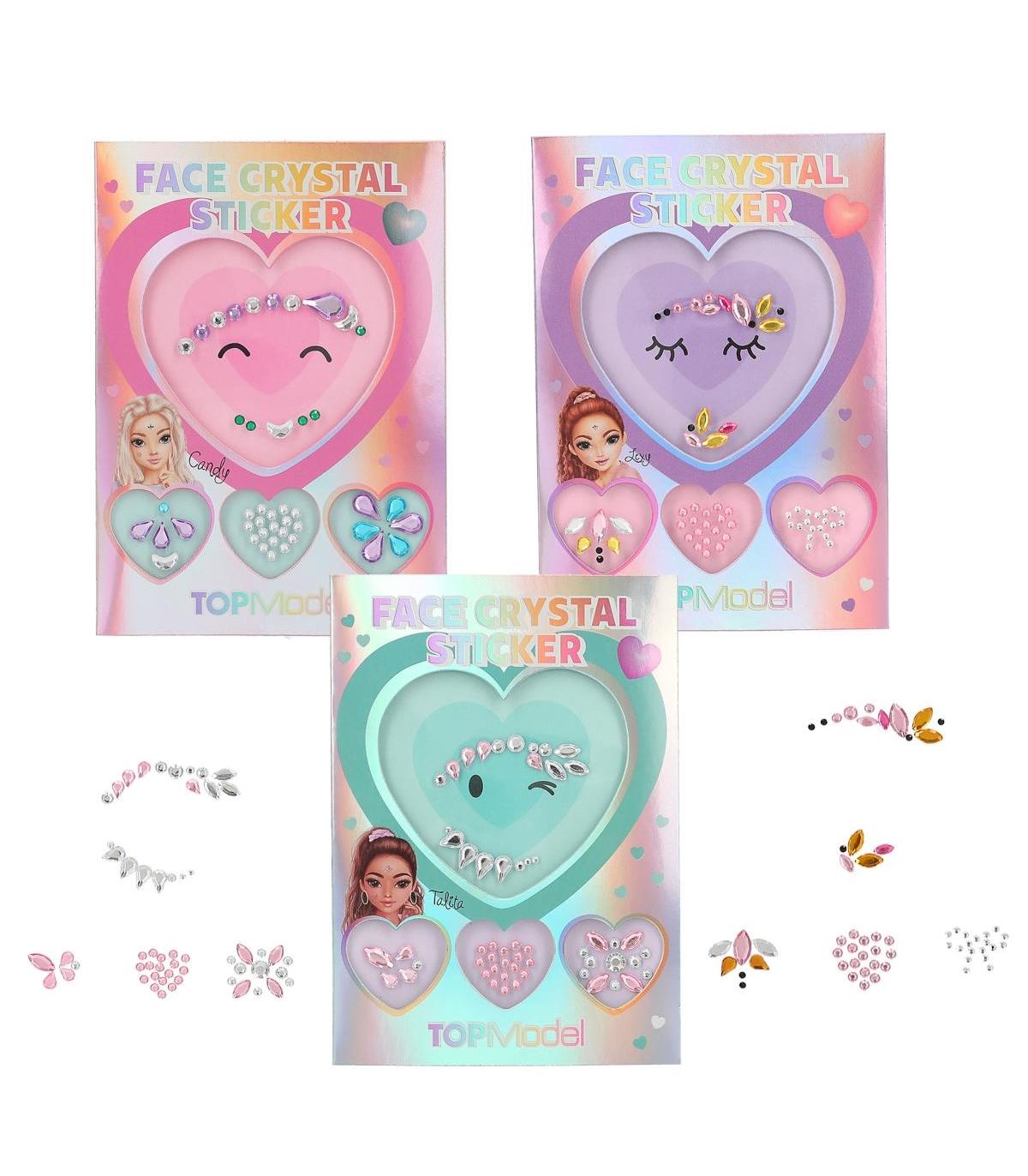 Topmodel Brillantes Faciales Adhesivos ¡Brillo, glamur, genial! Los brillantes adhesivos para la cara están pensados para embellecer la zona alrededor de los ojos fundamentalmente. Disponibles 3 sets con colores y formas distintos.