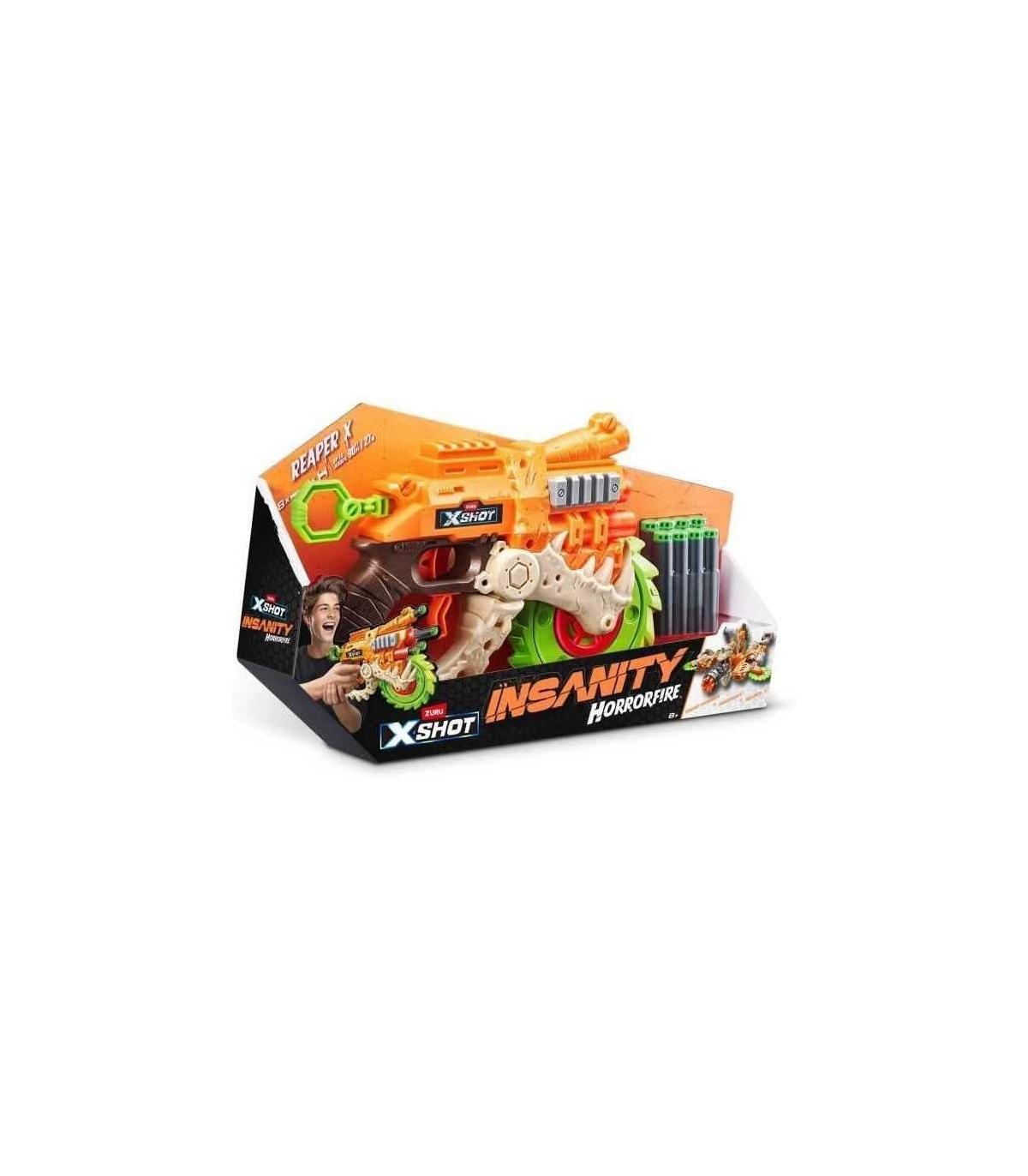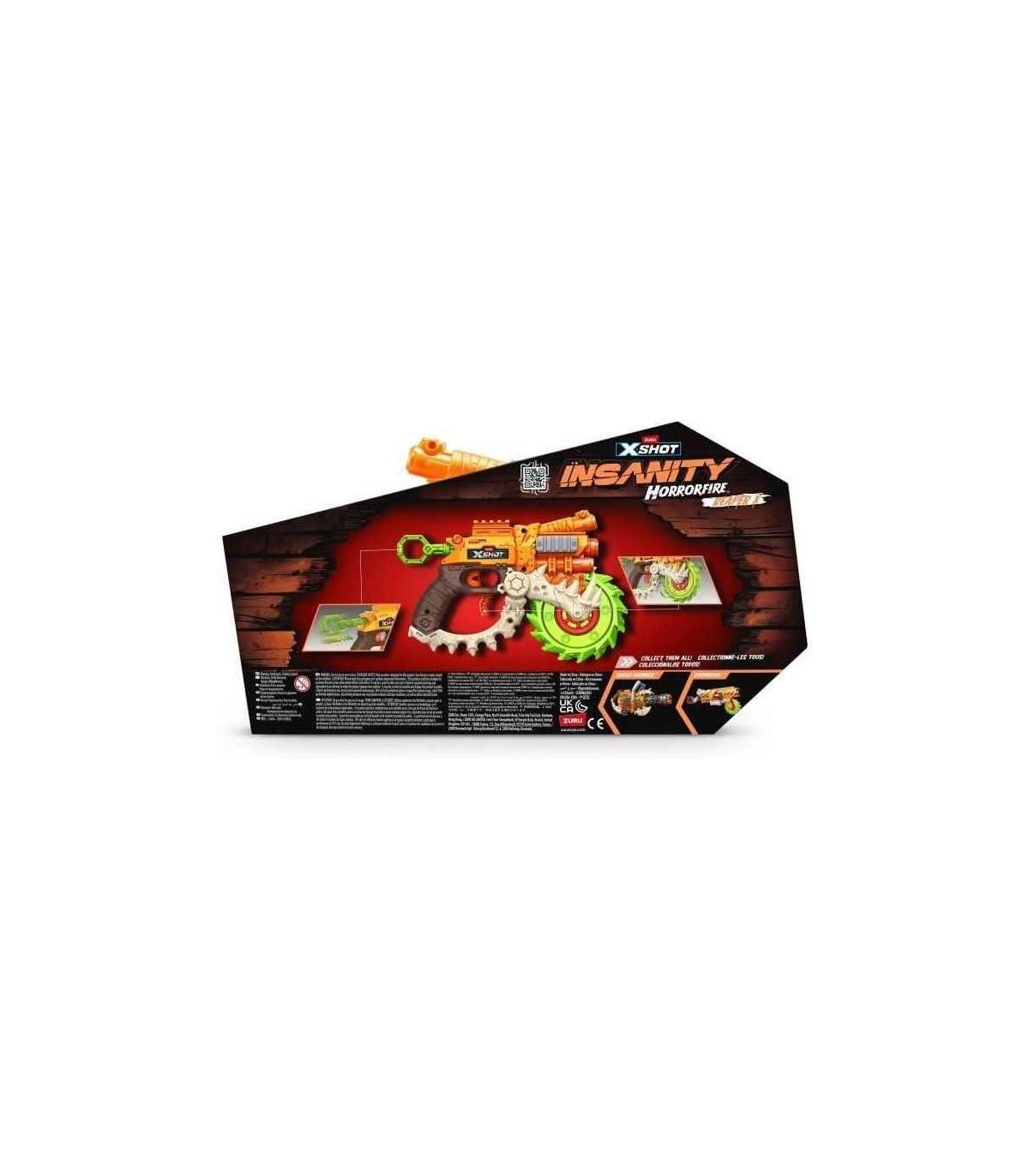 1. Acción de hoja de sierra. : El XSHOT Insanity HorrorFire Reaper X cuenta con un gatillo secundario que activa una hoja de sierra giratoria, lo que te da aún más formas de jugar 2. Potencia de disparo: golpea múltiples objetivos de hasta 27 m de distancia. 3. Capacidad de los dardos: el XSHOT Insanity HorrorFire Reaper X tiene una sola capacidad de tracción de dardos para cebar. ¡Desata los 8 dardos incluidos en tus enemigos! 4. Tecnología de bolsillo de aire: XSHOT Insanity HorrorFire Reaper X incluye dardos con tecnología Air Pocket para una explosión más, más rápida y precisa 5. Combina los Blasters: da rienda suelta a algo horrible mientras combinas el Reaper X con otros lanzadores Insanity HorrorFire