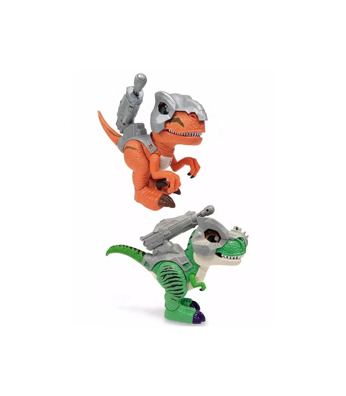 Este T-Rex no viene solo con rugidos: viene con una armadura robótica que lo hace aún más poderoso y un lanzador en la espalda para disparar proyectiles como si fuera un auténtico héroe del futuro. ¡Los enemigos no tienen nada que hacer!