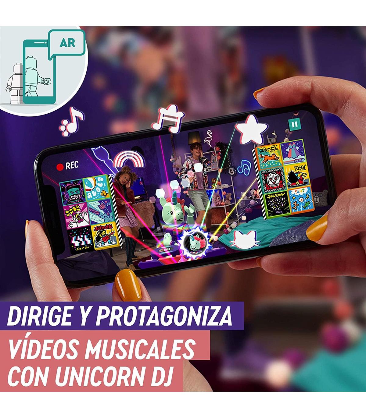 Incluye una mini figura de Unicorn DJ, un accesorio de disco LP, 14 BeatBits aleatorios, 2 BeatBits especiales y un escenario que permite crear y editar vídeos musicales interactivos