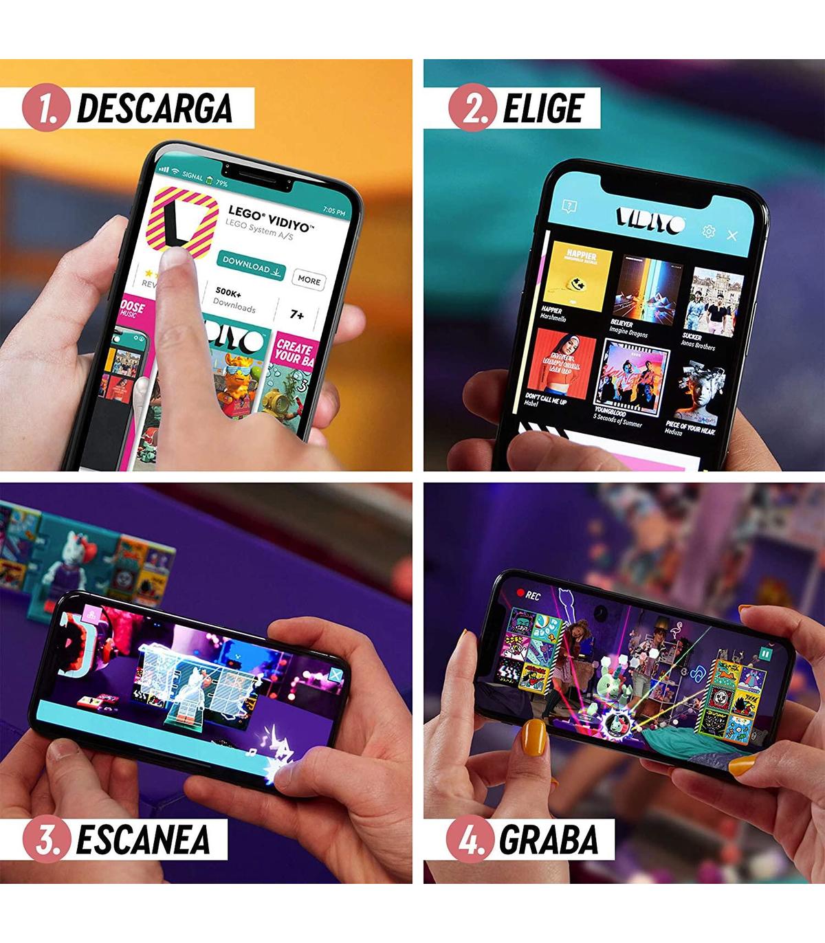 Verifica la compatibilidad de tu dispositivo descargando la aplicación gratuita y graba tu primer vídeo musical con un Bandmate digital gratis antes de comprarlo; busca 'LEGO VIDIYO' en App Store o Google Play