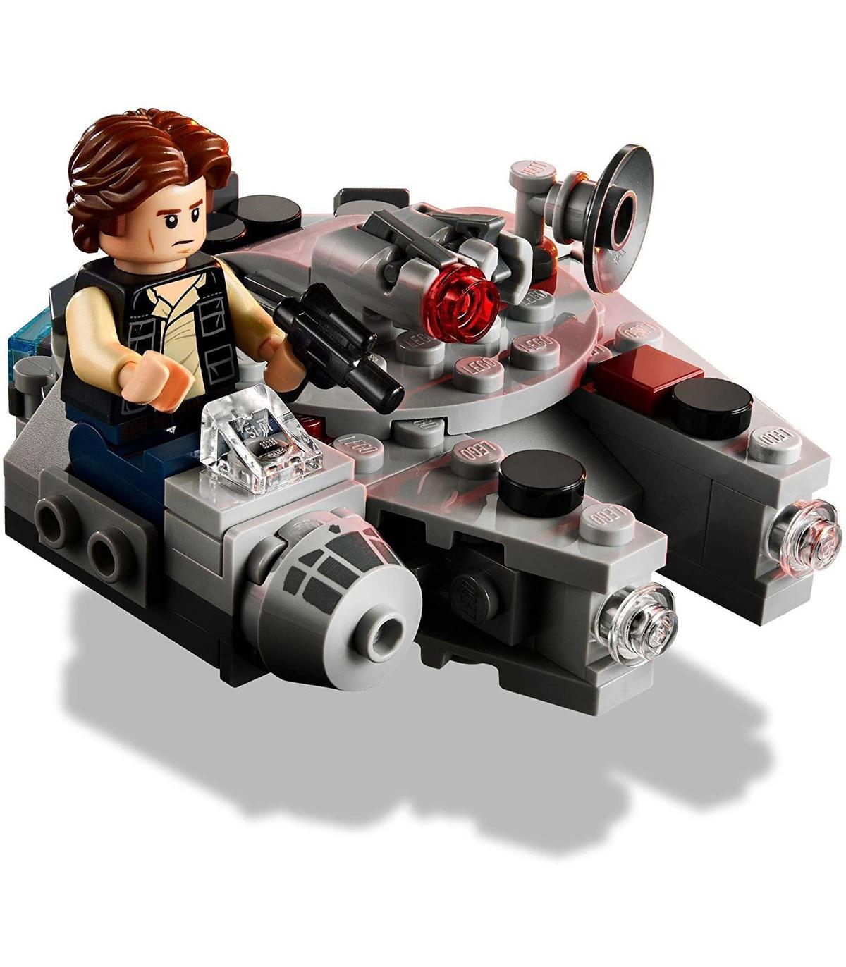 El set Microfighter: Halcón Milenario (75295) cuenta con un asiento para la minifigura LEGO de Han Solo y está equipado con 2 cañones que pondrán en marcha el juego creativo y la diversión Han Solo trae también una pistola bláster
