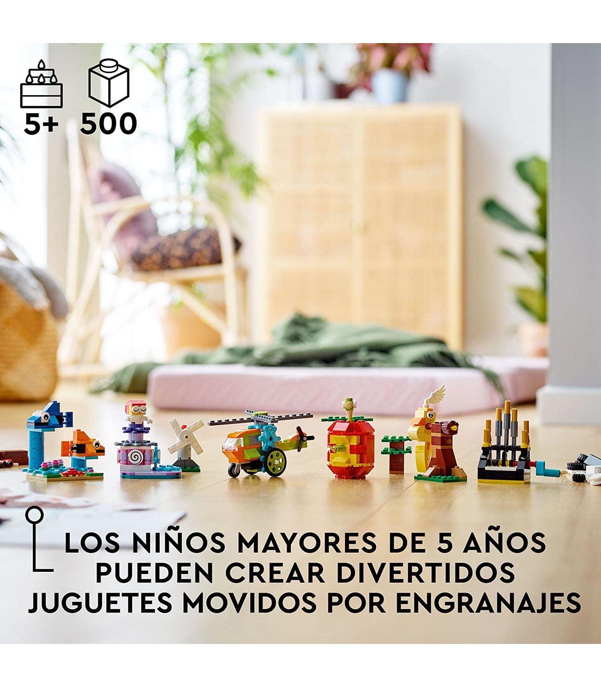 Este juego de construcción LEGO Classic cuenta con engranajes y ladrillos LEGO con los que construir 7 mini figuras móviles, perfectas para poner en marcha la diversión