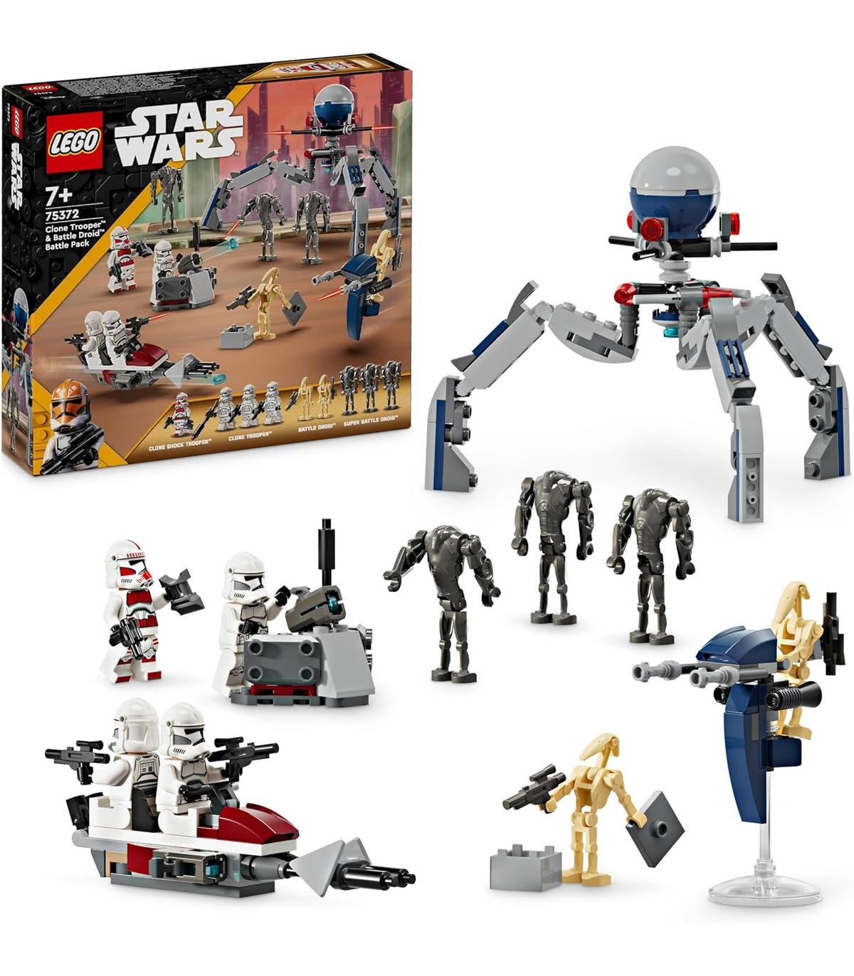 Lego 75372 Pack De Combate: Soldado Clon Y Droide Pack de Combate: Soldado Clon y Droide de Combate: recrea las escenas de Star Wars: Las Guerras Clon con este juguete de acción construible que incluye figuras LEGO Star Wars, una moto speeder y mucho más 4 minifiguras LEGO Star Wars y 5 figuras LEGO listas para el juego de acción: Un soldado clon de choque, 3 soldados clon, 3 superdroides de combate y 2 droides de combate con diversos accesorios Moto speeder LEGO Star Wars para construir: la moto speeder cuenta con 2 cañones que disparan, 2 soportes para blásteres y espacio para 2 soldados clon Juego creativo sin fin: un tri-droide con parte superior giratoria y 3 lanzamisiles, un speeder PAM para un droide de combate, un puesto defensivo con un cañón que dispara, un elemento que representa un detonador térmico y mucho más Divertidos juguetes LEGO Star Wars para todas las edades: los juguetes de construcción LEGO Star Wars permiten a los niños y los fans adultos recrear icónicas escenas, inventar aventuras de acción o, simplemente, exponer las maquetas de construcción Divertidos juguetes LEGO Star Wars para todas las edades: los juguetes de construcción LEGO Star Wars permiten a los niños y los fans adultos recrear icónicas escenas, inventar aventuras de acción o, simplemente, exponer los modelos construibles