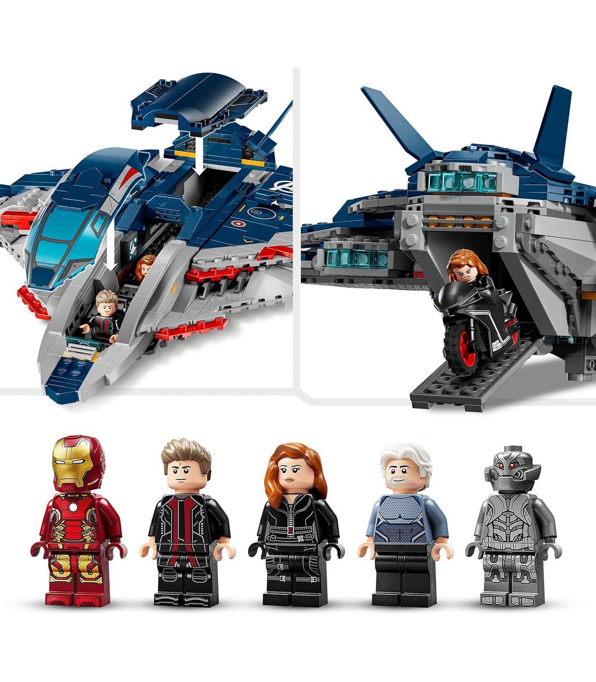 5 minifiguras de superhéroes: El set construible incluye minifiguras LEGO de Viuda Negra (con su moto), Iron Man, Quicksilver, Ultrón Supremo y Ojo de Halcón (con su arco y flecha)