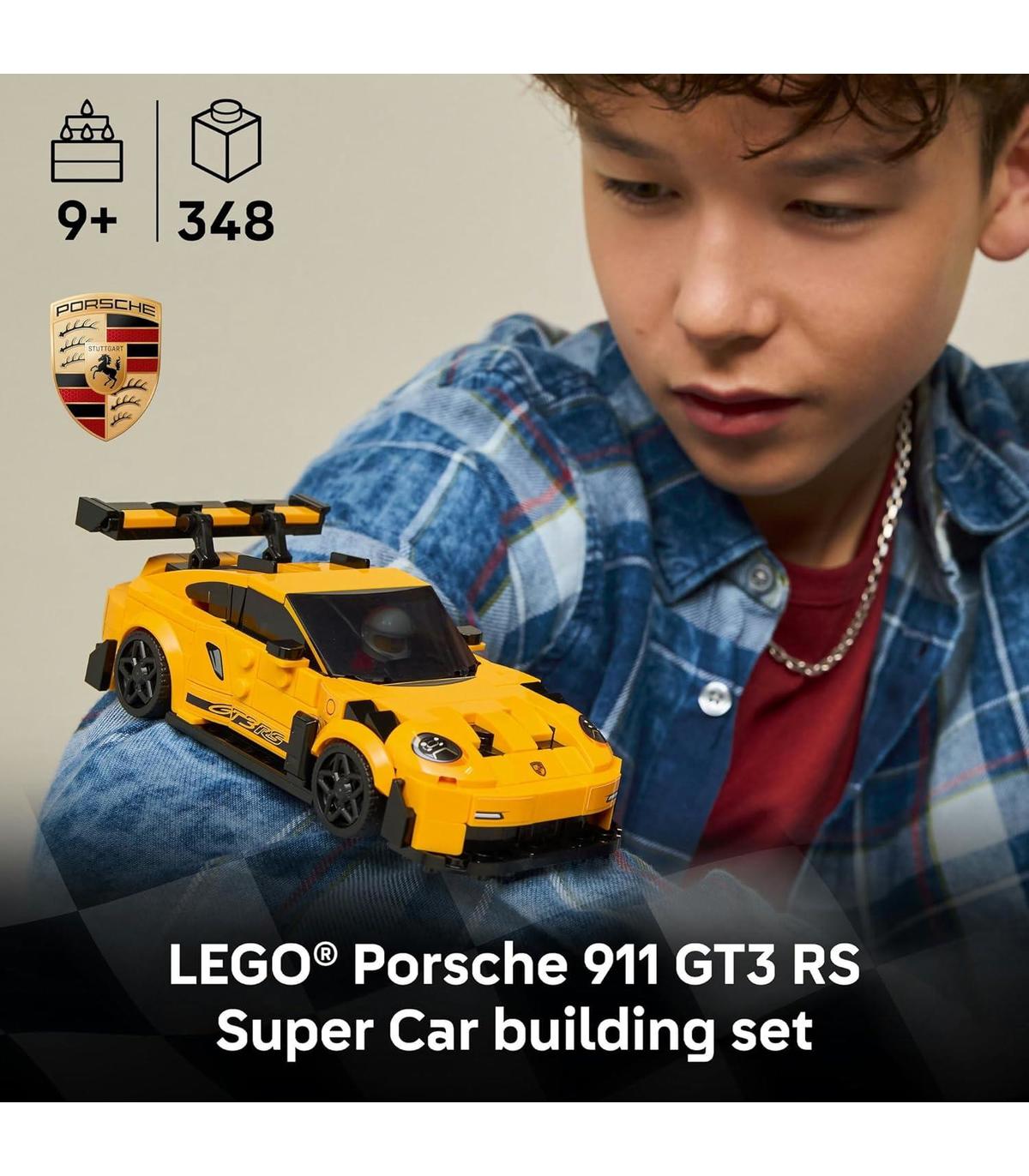 Un coche de juguete: El kit de maquetas LEGO Speed Champions Superdeportivo Porsche 911 GT3 RS para niños y niñas a partir de 9 años y para fans de Porsche