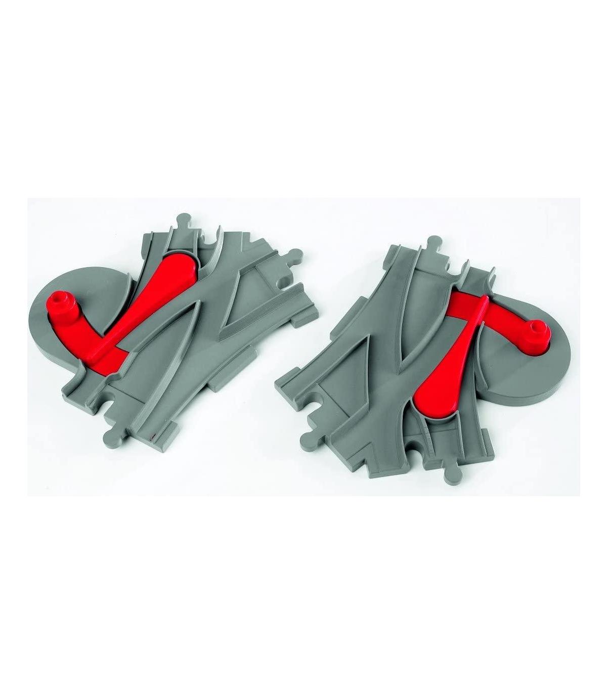 Con estos caminos para que tus trenes DUPLO lleguen a tu destino. Mueve la palanca roja grande para dirigir el tren en otra dirección.