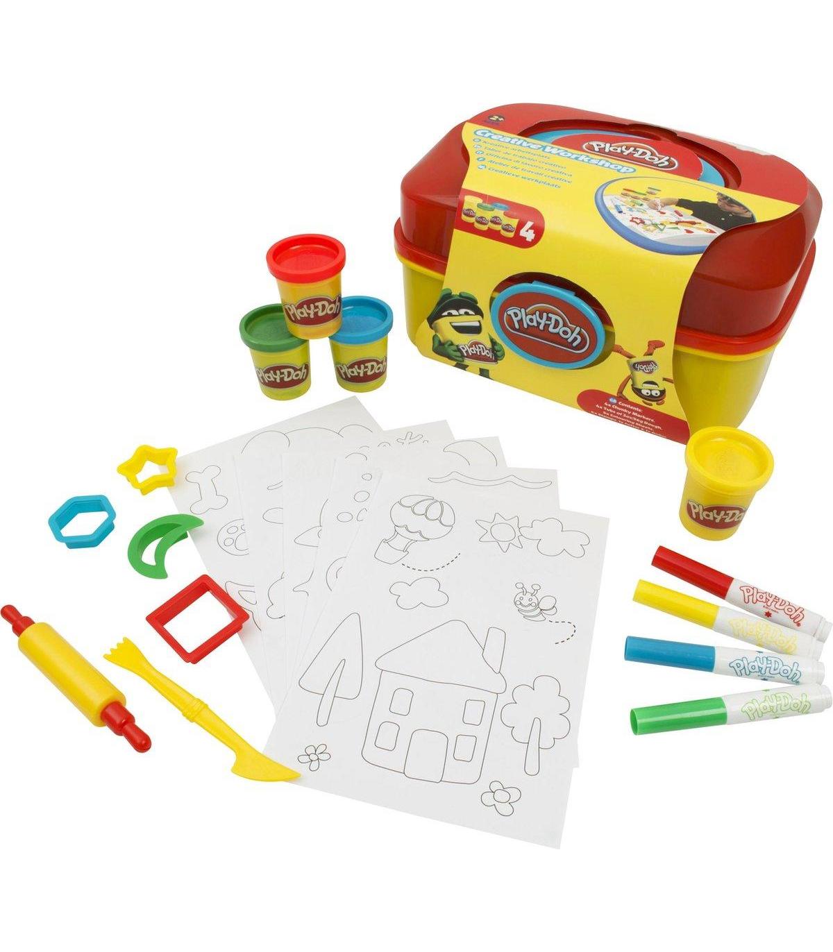 Play-Doh es plastilina, es decir, masa plástica blanda, gracias a la cual todos los niños pueden crear todo lo que sueñan. ¡La plastilina garantiza una diversión genial y segura! Desarrolla la imaginación, la creatividad y las habilidades manuales del niño. Ayuda a distinguir colores y estimula la imaginación. ¡Tiene colores hermosos y vivos y no te ensucia las manos! El juego se envía en una bonita y práctica maleta. Todos los tesoros caben en un recipiente cómodo y resistente con asa. En el interior hay cuatro tubos de plastilina de diferentes colores. Los elementos adicionales necesarios para crear obras de plastilina son un rodillo y un cuchillo. El set incluye cuatro moldes de cuatro formas diferentes. También hay cuatro rotuladores de diferentes colores y cinco dibujos para colorear.