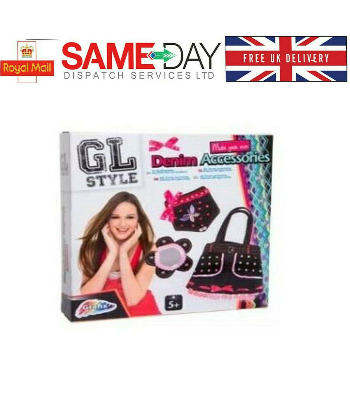 GL Style Dazzling Denim Haz tu propio bolso Monedero y accesorios Girls Craft GL Denim Haz tu propio bolso, bolso y accesorios Kit de manualidades de costura para niños EASY