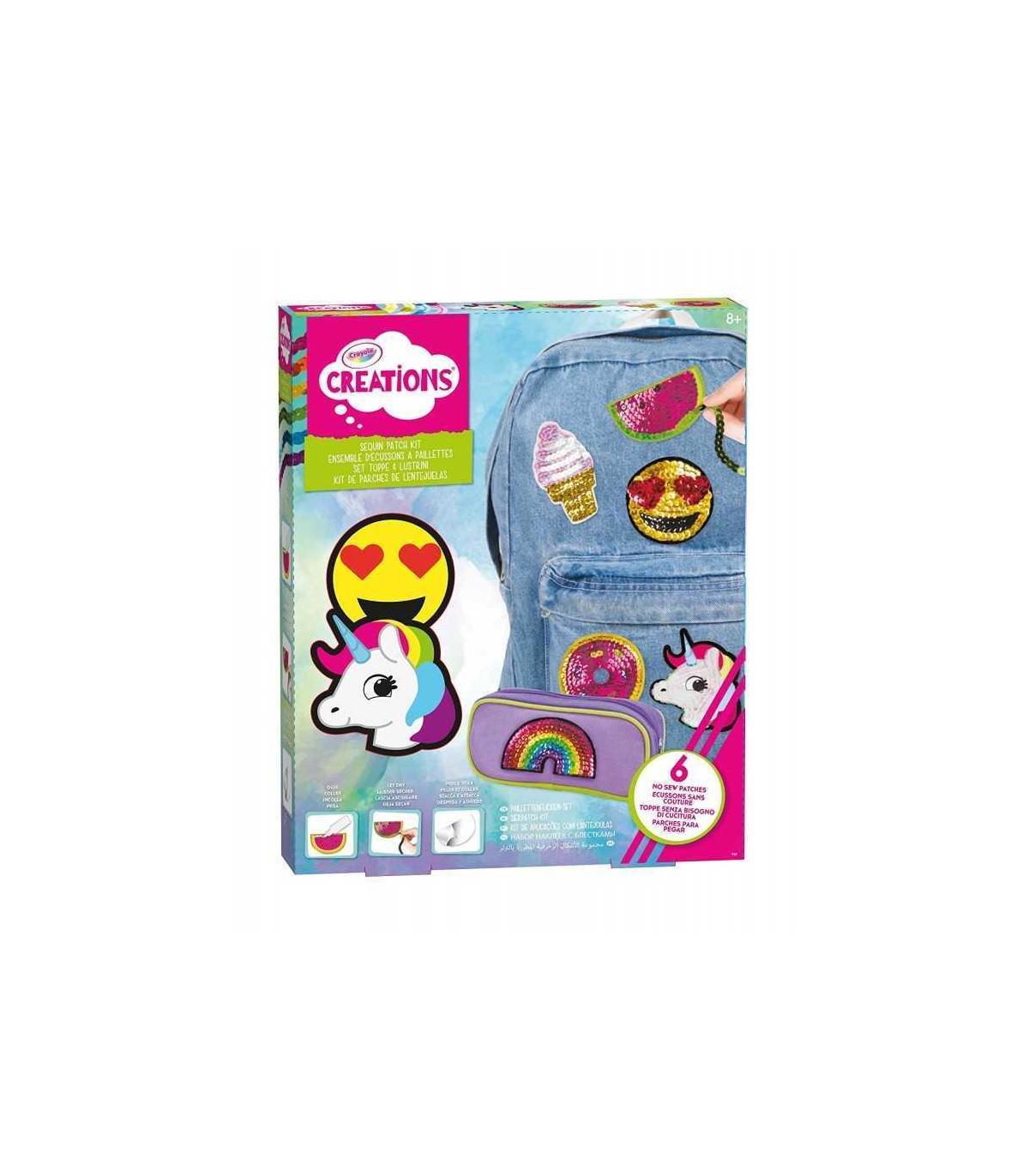 Para el brillo conjunto para crear parches de super moda y personalizar mochilas, bolsos, estuches, camisetas, zapatos, gorras y mucho más. Es divertido y fácil en tres pasos muy simples: sólo tienes que elegir el parche que usted prefiere y extender el pegamento, se aplican las lentejuelas patrón y se adhieren a la superficie deseada. Los parches adhesivos y no necesita de costura. Juego de parches y lentejuelas. Juego para crear brillantes parches de lentejuelas. Ideal para decorar mochilas, estuches o sombreros. Ideal como regalo.