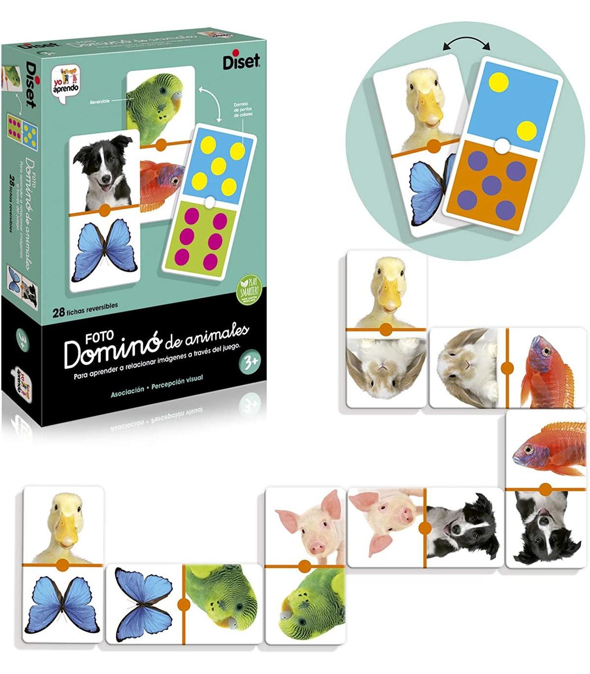 Domino Photo Animals Dominó de 28 piezas reversibles; Por un lado tiene fotografías reales de animales y, por el otro, puntos de colores como el clásico juego Para un nivel inicial se puede empezar a jugar con la cara de los animales para, más adelante, jugar con el dominó e puntos Número de jugadores: de 2 a 4 Contenido: 28 piezas reversibles Habilidades que desarrolla: iniciararse en el respeto a las reglas y desarrollo de la sociabilidad