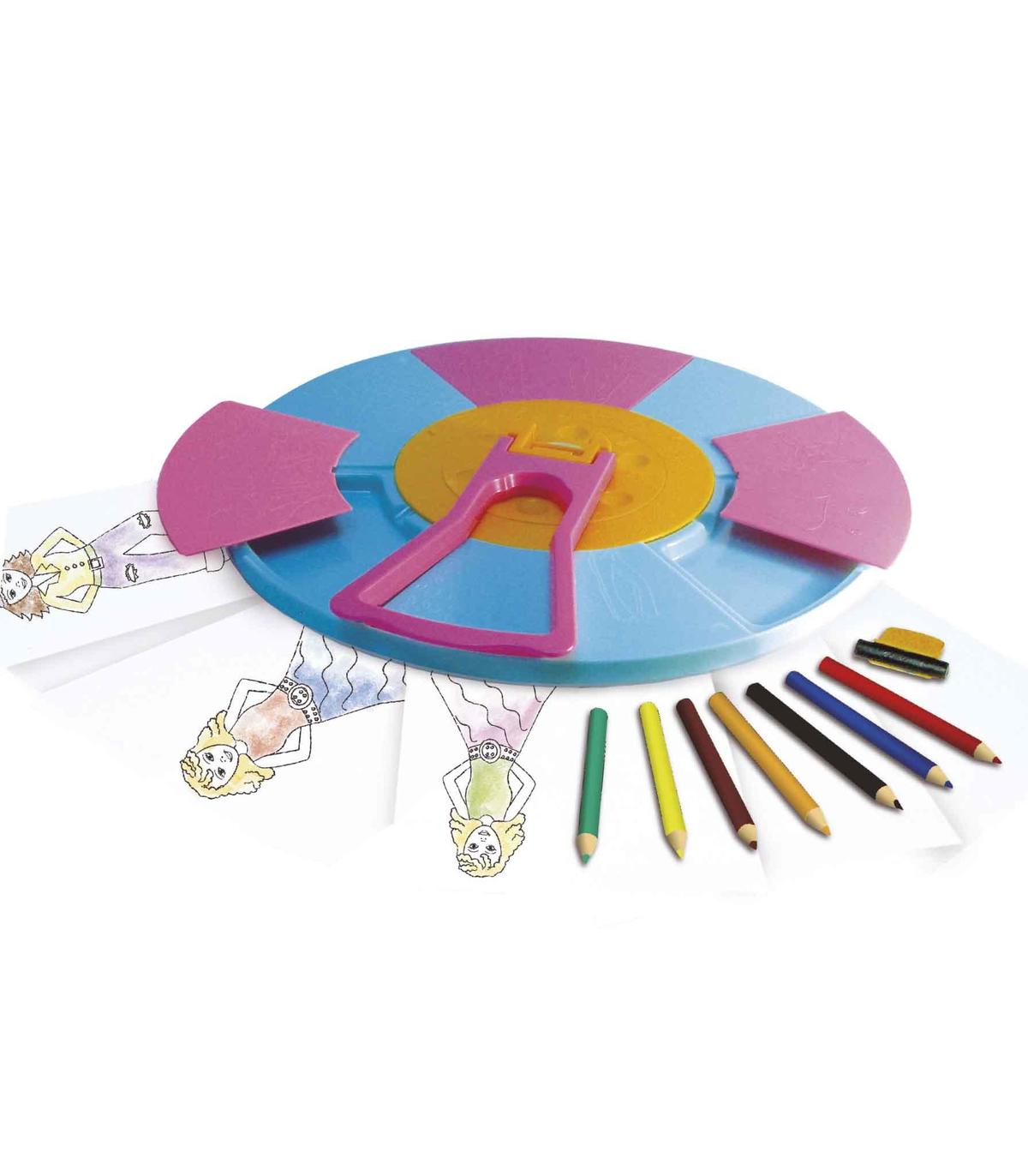 Rueda Crea Tu Moda Divertido juego para diseñar y crear los modelitos que más te gusten. ¡Para auténticos diseñadores! Escoge las plantillas que te gusten girando las ruedas y coloca el papel .. ¡ya lo tienes!