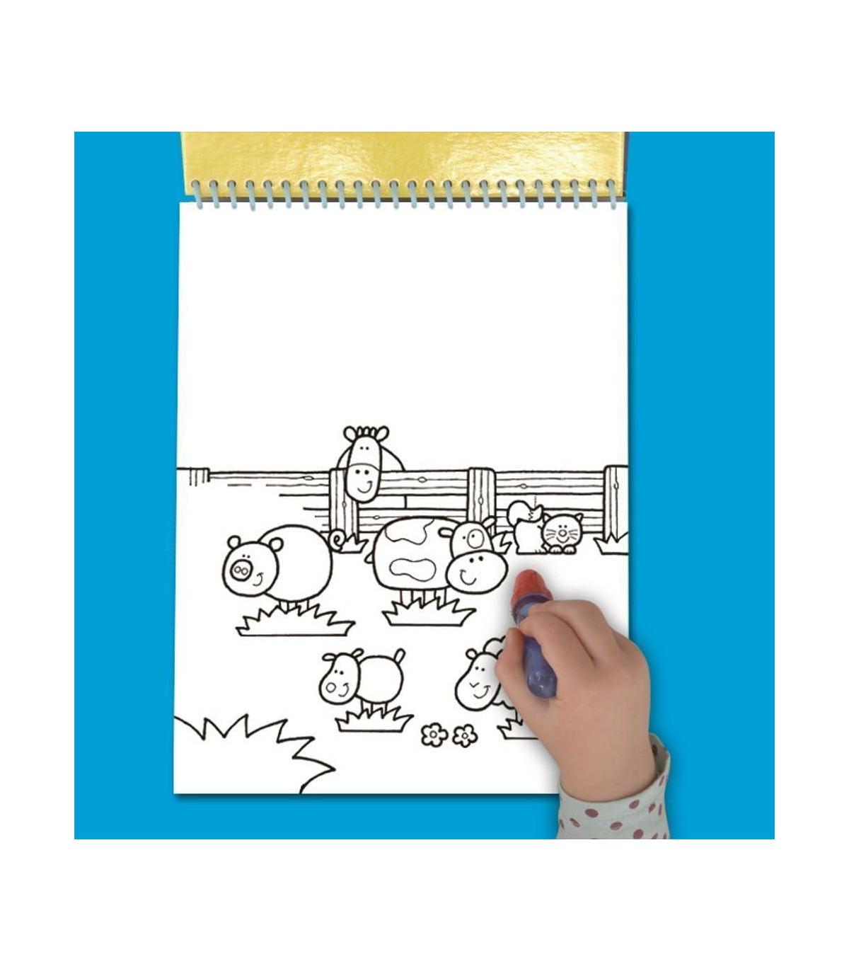 Granja Libreta para colorear con distintas imagenes en una granja Los 6 dibujos son reutilizables para colorear con rotuladores de agua Rellena el rotulador con agua y úsalo para descubrir los dibujos ocultos; Los colores aparecen como por arte de magia, una y otra vez adecuado para llevar de viaje; Contenido: libro para pintar con 6 láminas distintas y lápiz de agua Habilidades que desarrolla: el dibujo de los más pequeños con un poco de magia