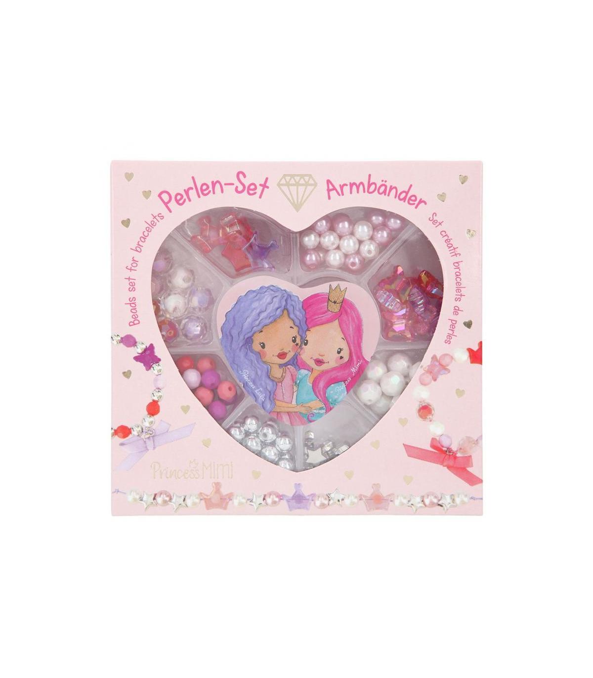 Princess Mimi Set De Abalorios Para Pulseras Una cajita transparente con forma de corazón llena de cuentas preciosas para hacer pulseras ideales. El set de cuentas de Princess Mimi incluye también cinta elástica de dos colores, 3 lacitos de raso monísimos y cuentas en colores pastel (un total de 110 de 8 formatos diferentes).
