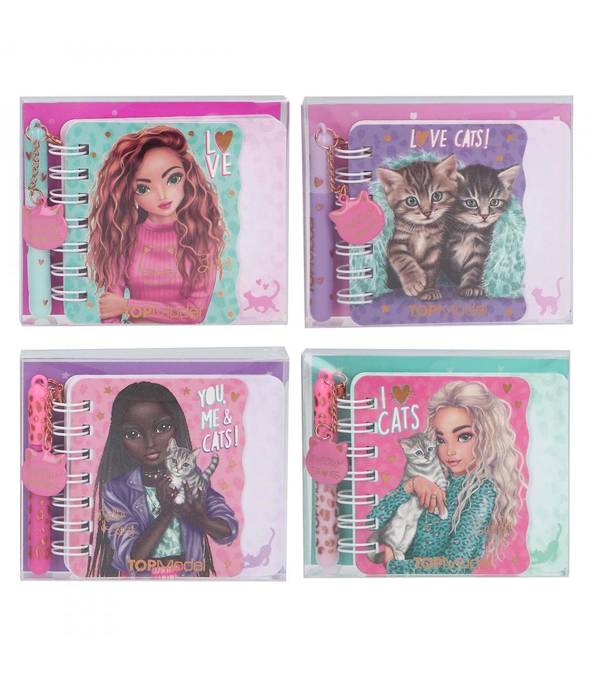 Monísimos sets de la colección "Leo Love" de TOPModel compuestos por minibloc de notas y bolígrafo. Existen 4 modelos con diferentes diseños de gatitos y de bolígrafos. Los bolígrafos se complementan con un gracioso colgante de una carita de gato. La tinta de los bolígrafos es azul (minas no recambiables) y los blocs de espiral tienen 40 páginas aprox.